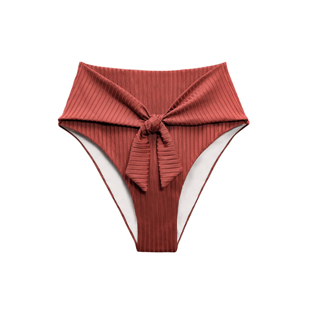 LeRêve Paris-AIRise 法式綁結修身高腰泳褲-楓葉紅 可調式 高腰 顯瘦 遮肚 修身款