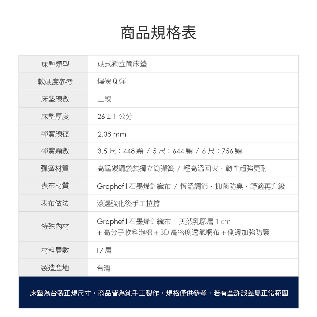 【 Famo 】偏硬 Q 彈|石墨烯 Graphefil 乳膠床墊 高回彈硬式獨立筒 台灣製 配送免運【 蝦幣5倍送 】