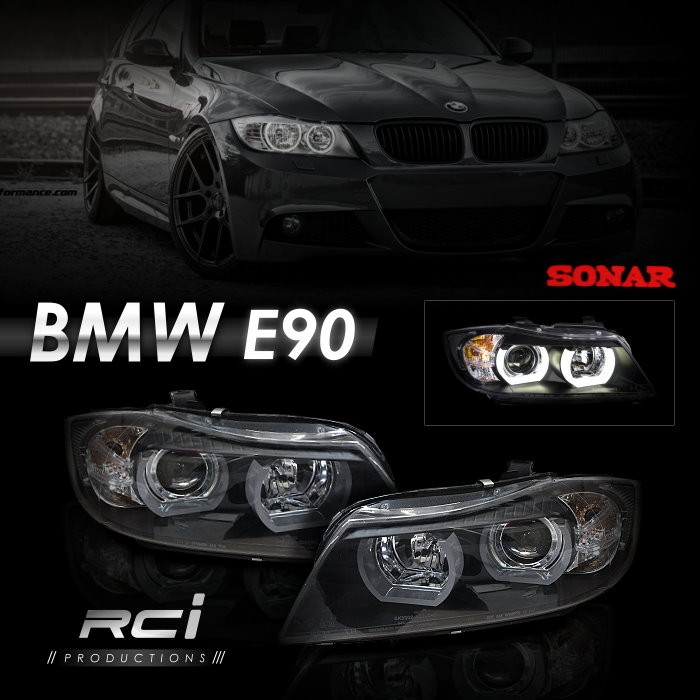 SONAR 台灣 BMW E90 E91 前期05-08年 U型導光 LED光圈 335 320 魚眼大燈 (限定宅配)