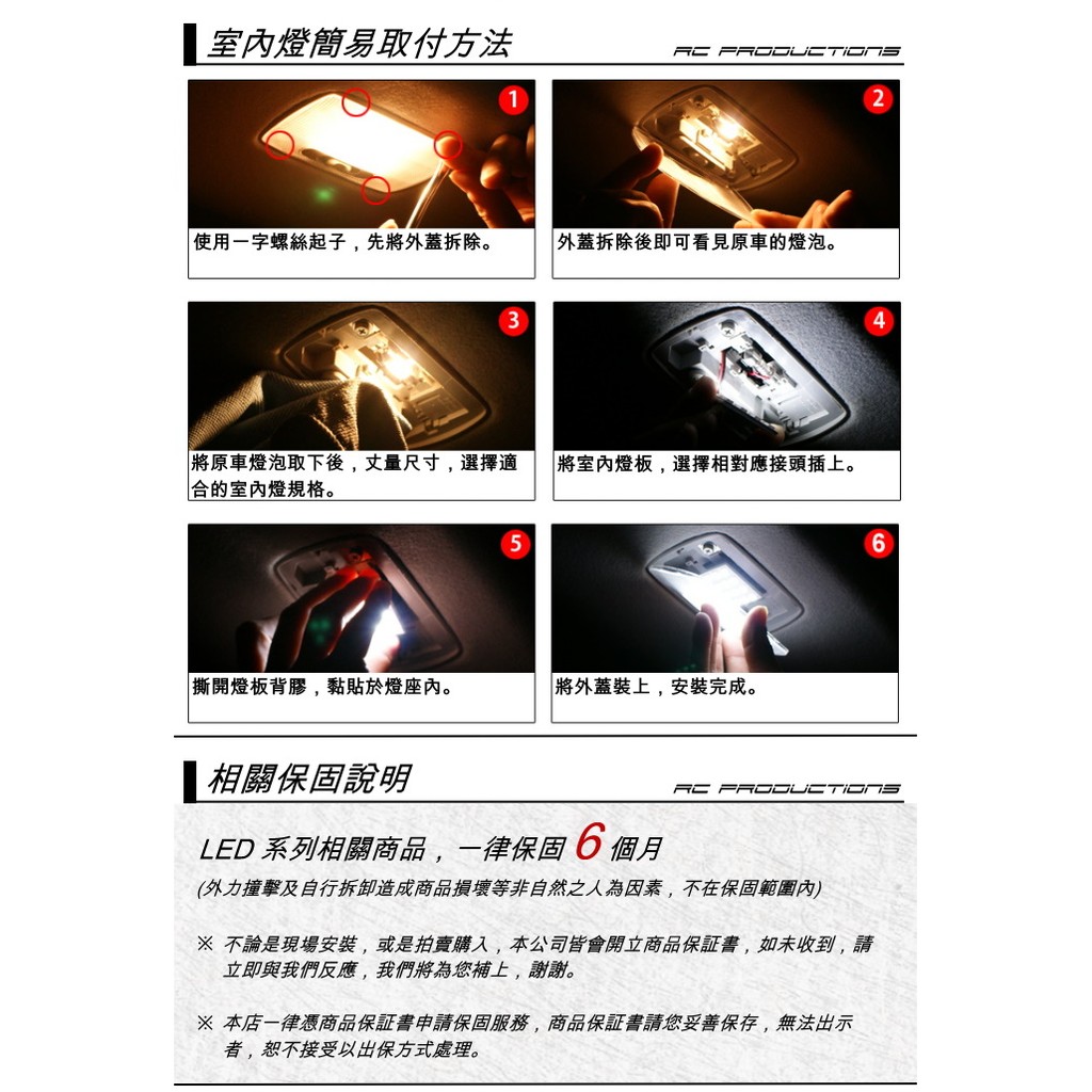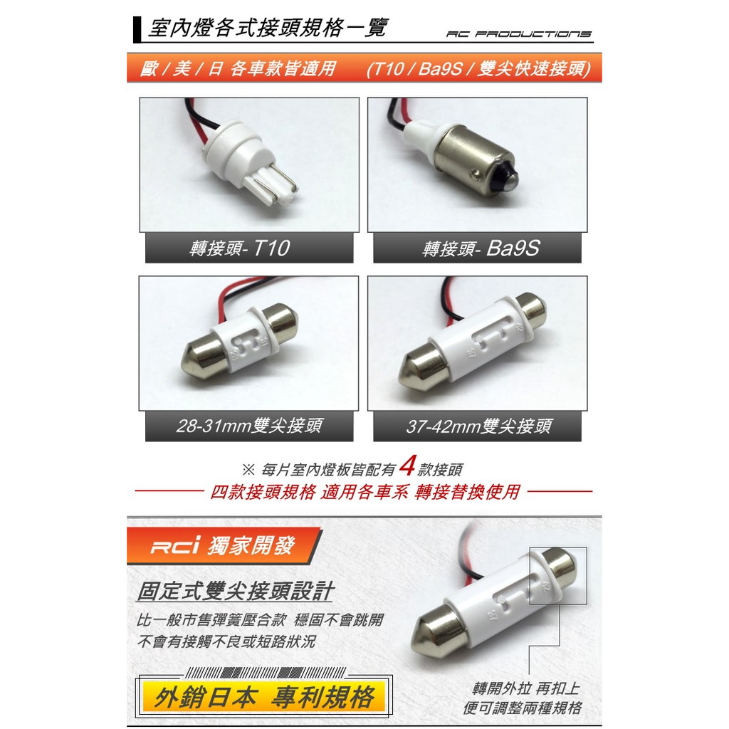 RCI 通用型 LED 室內燈 車內燈 閱讀燈 車廂燈 手套燈 高亮度 白光 暖白光 多種規格 適用各12V車款