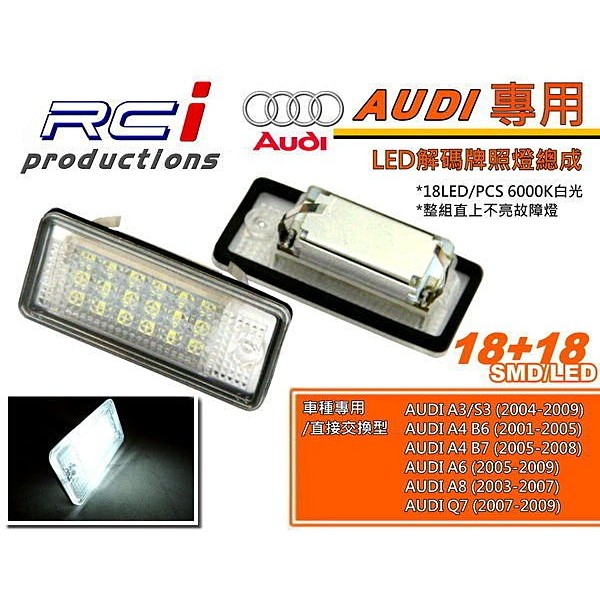 AUDI 專用 LED牌照燈 原廠交換型 A3 8P A4 B6 B7 A6 A8 Q7 RS4 RS6 適用