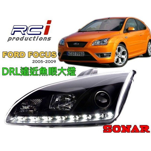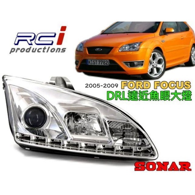 SONAR 台灣秀山 FORD FOCUS MK2 晶鑽 燻黑 DRL款 雙光 遠近魚眼大燈