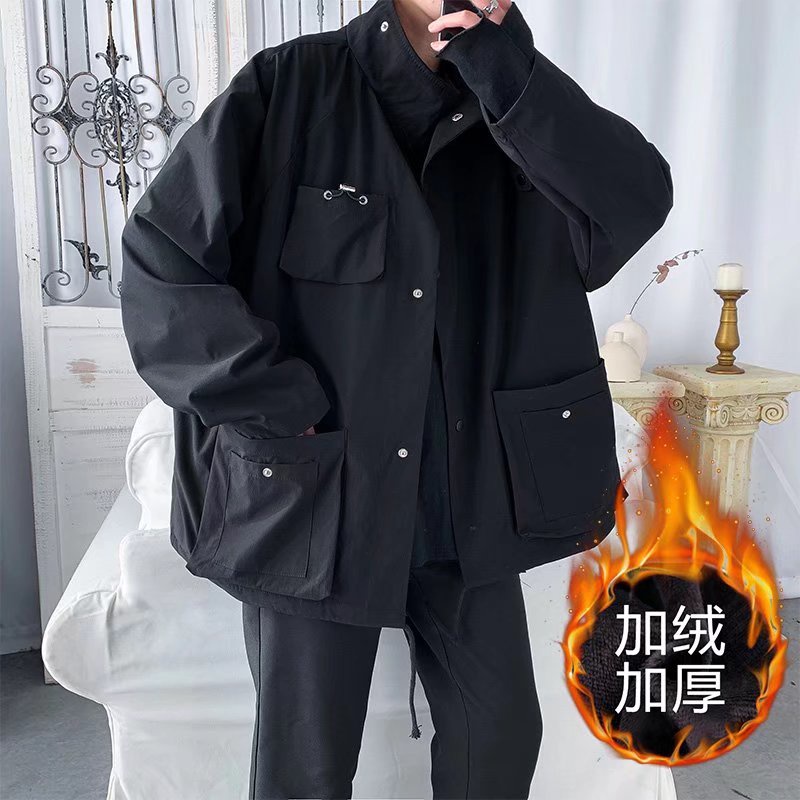 工裝外套男 內加絨 工作夾克 連帽外套 夾克 防風 防寒 多口袋 寬鬆 加厚外套潮 冬外套(YR888)【壹號站】