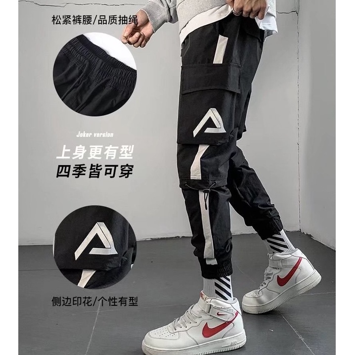 工裝褲男 多口袋大尺碼長褲 潮牌側口袋工作褲 九分褲 韓版男百搭長褲 哈倫褲 工作褲 束腳褲(CAA149)【壹號站】