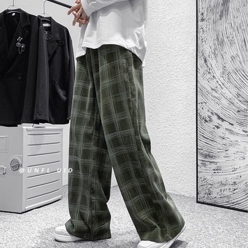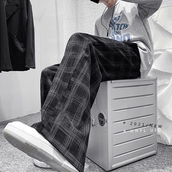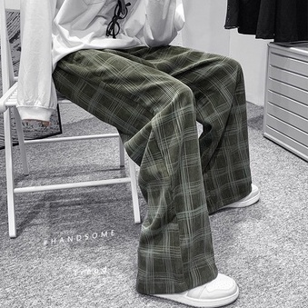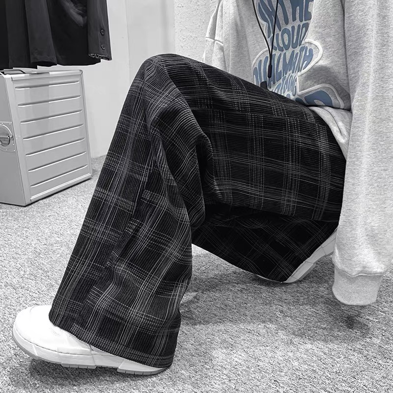 燈芯絨長褲 格子褲 格紋長褲 男士休閒褲 寬鬆格子長褲 大尺碼哈倫褲韓版長褲 潮男褲子 直筒褲 男生長褲(PM612)