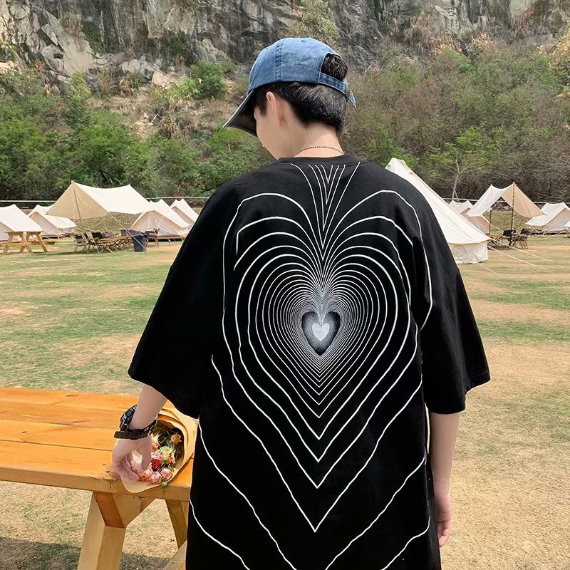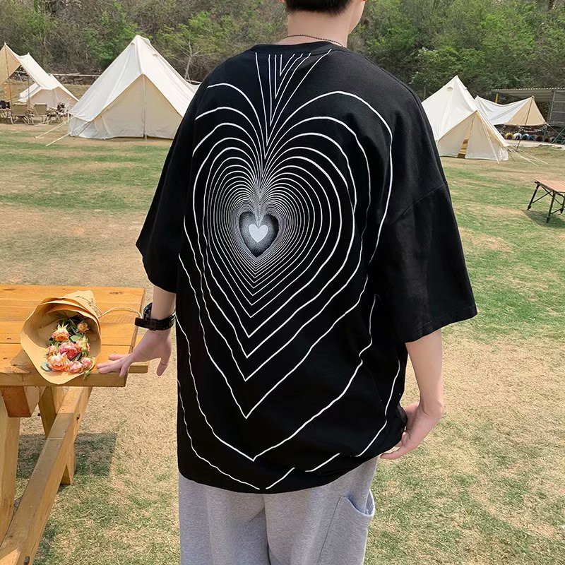 港风愛心印花短T 男高初中生圆领套头衫宽鬆 印花T 短袖上衣 大學T 短T T恤(TFT55)【壹號站】