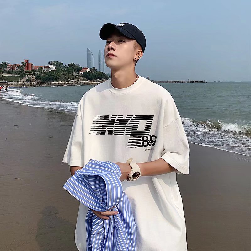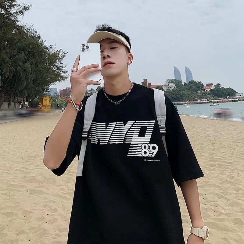 潮流男生短T 日系時尚百搭短T 寬鬆 嘻哈 大尺碼 五分袖 短T 印花T恤 情侶 衣著 上衣短袖 T恤(SKS2013)