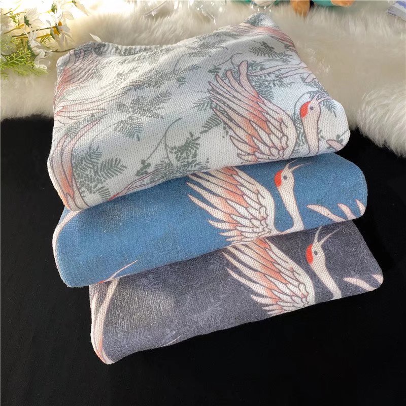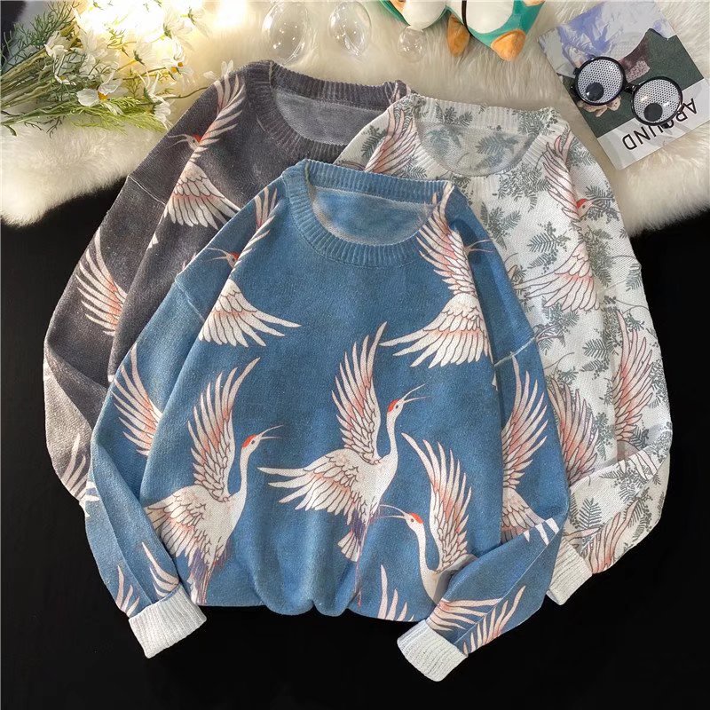 韓版圓領仙鶴毛衣 寬松加厚針織衫 BF風套頭毛線上衣 學院風休閑針織外衣 秋冬衣著 毛衣男(JHB010)【壹號站】