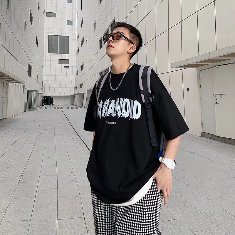 潮流男生短T 日系時尚百搭短T 寬鬆 嘻哈 大尺碼 五分袖 短T 印花T恤 情侶 衣著 上衣短袖 T恤(SKS2021)