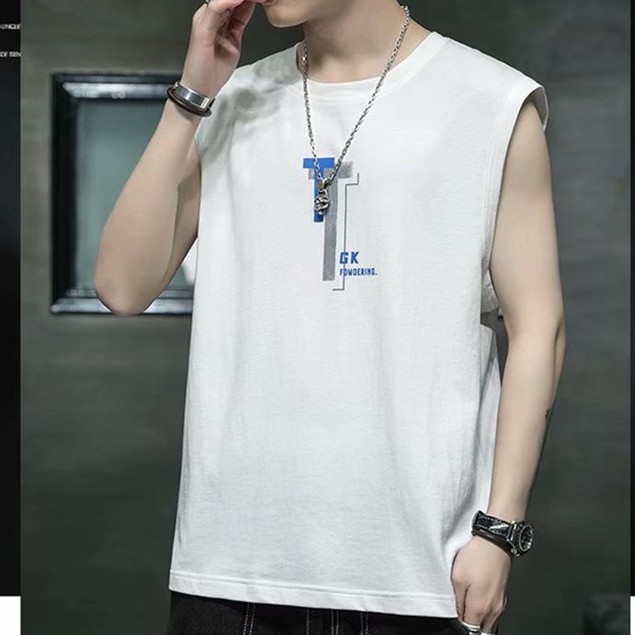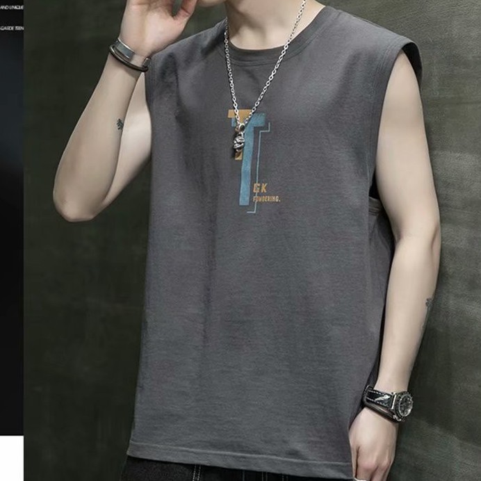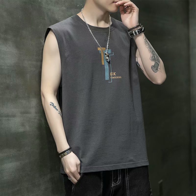港風背心印花無袖T恤 潮牌背心 坎肩汗背心男 寬松背心 運動無袖t恤男 港風chic個性上衣 跑步T(LRB27)