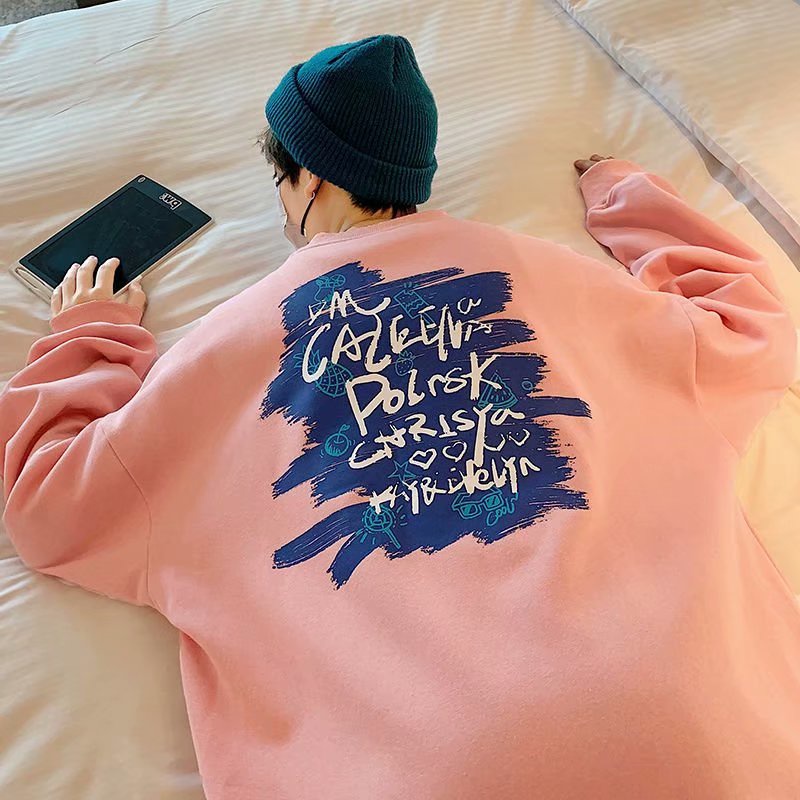 秋季新款 刷毛圓領套頭大學T 情侶裝流行刷毛款男潮版港風修身中青年寬鬆版 大學T 印花T 長T(XLV79)【壹號站】