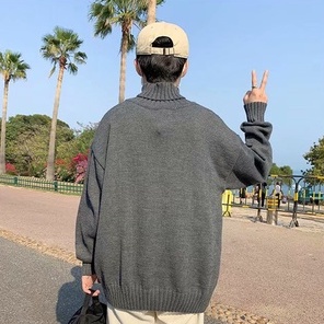 M-8XL 高領素面毛衣 秋冬季韓國高領長袖毛衣男生韓版打底衫彈力保暖修身 針織衫 情侶簡約毛衣(GLM60)【壹號站】