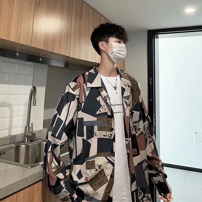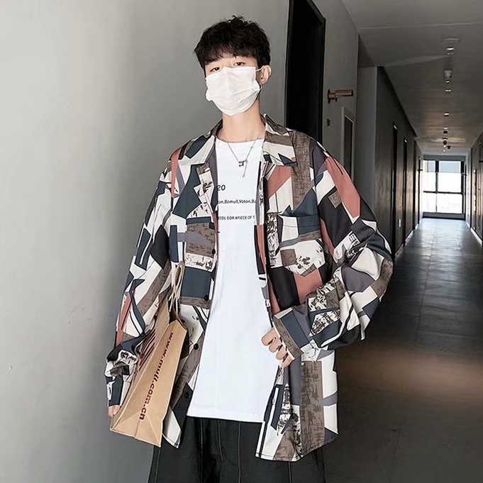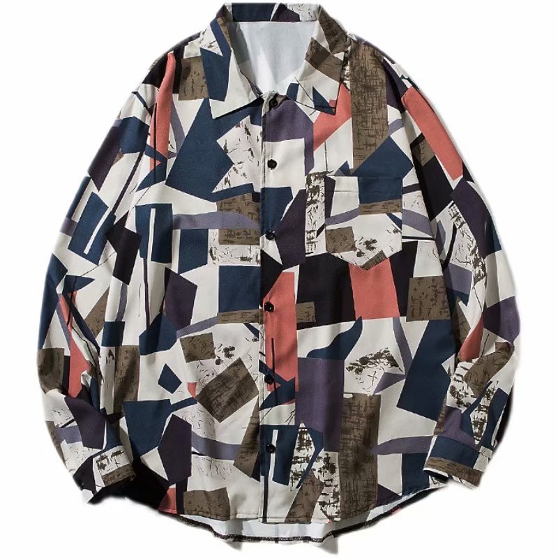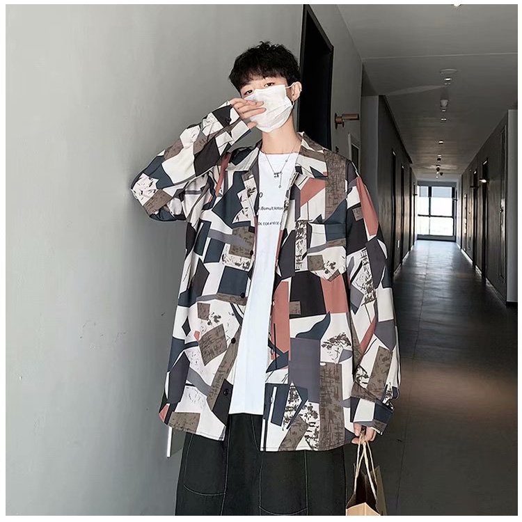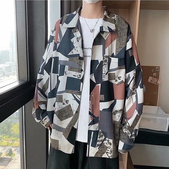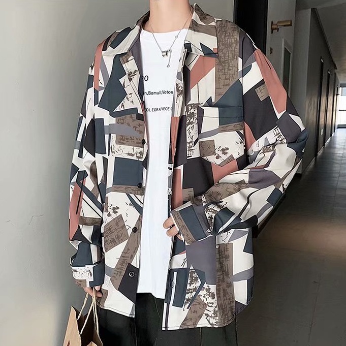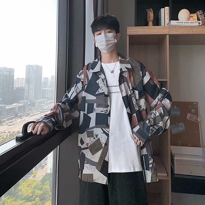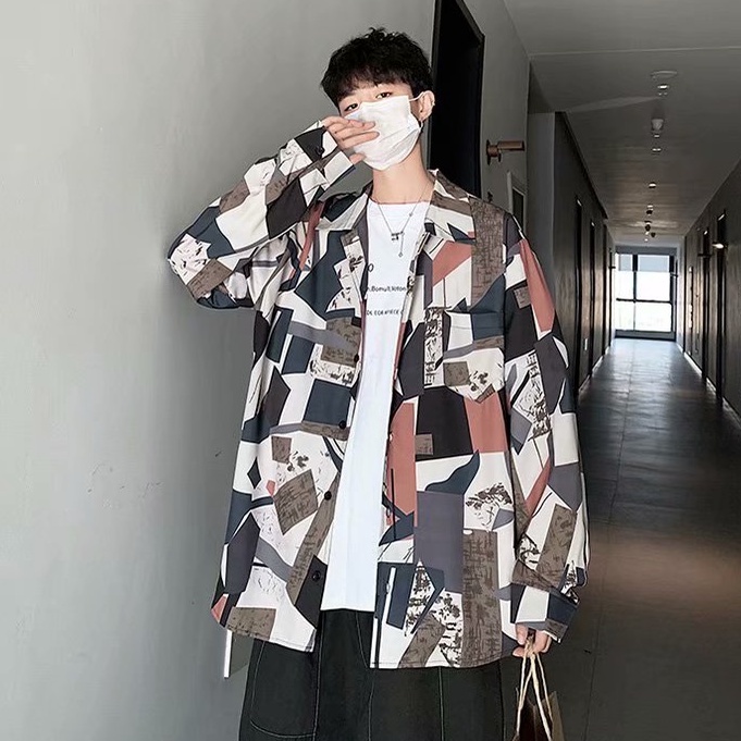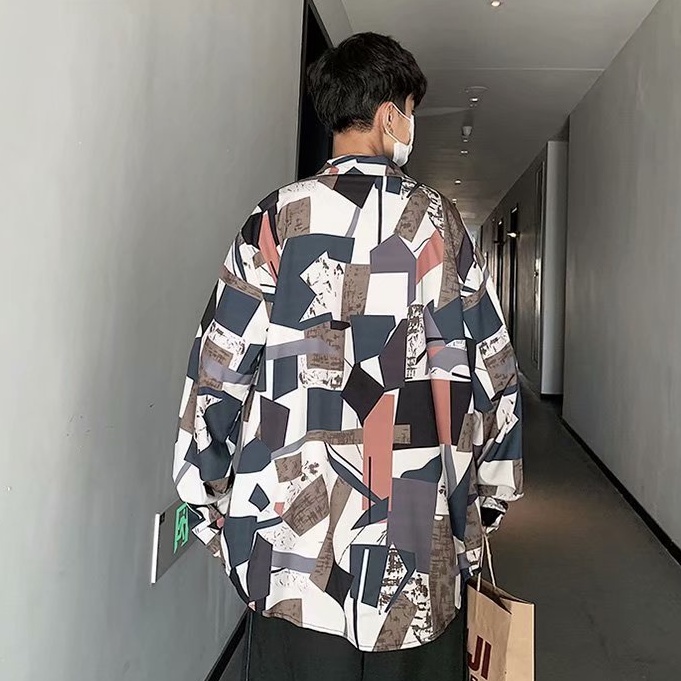 港風新款滿版長袖襯衫 男韓版潮流高街帥氣原宿風黑暗系寬鬆風嘻哈襯衣 長袖 襯衫 (JH2226)【壹號站】