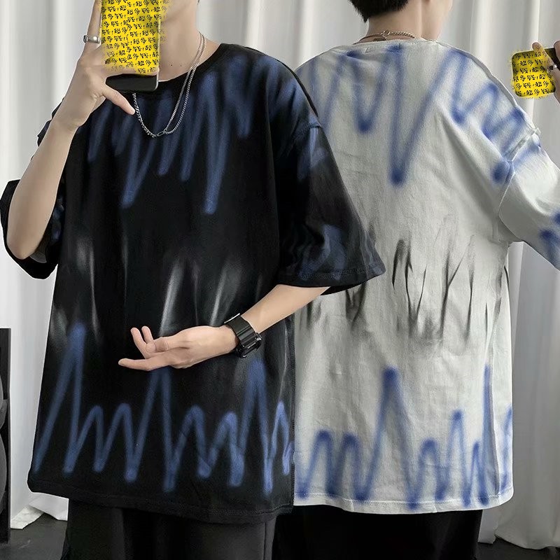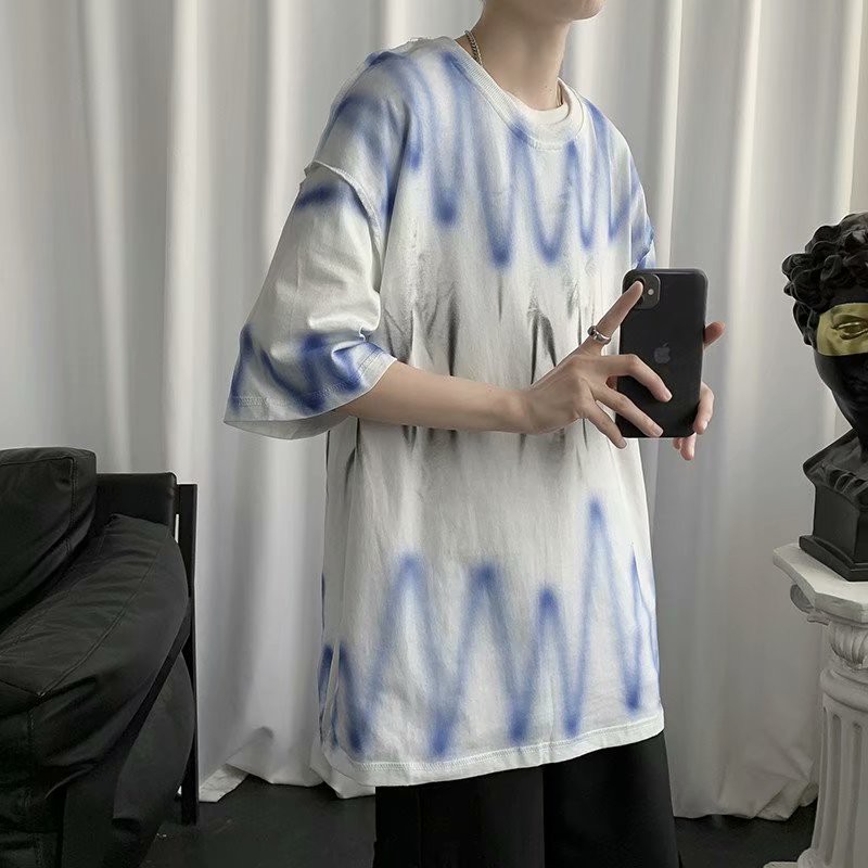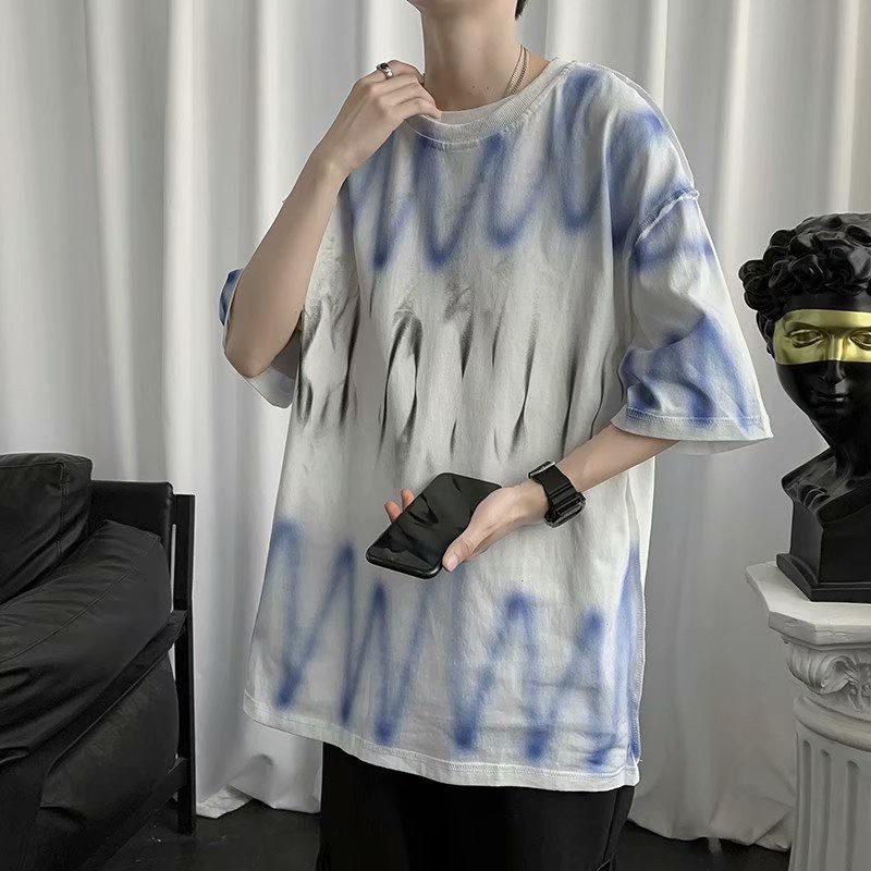 落肩塗鴉上衣 印花 5分袖T恤 短袖上衣 潮流T恤 寬版 男裝 短T T恤 印花T恤 男生衣著(GLT44)【壹號站】