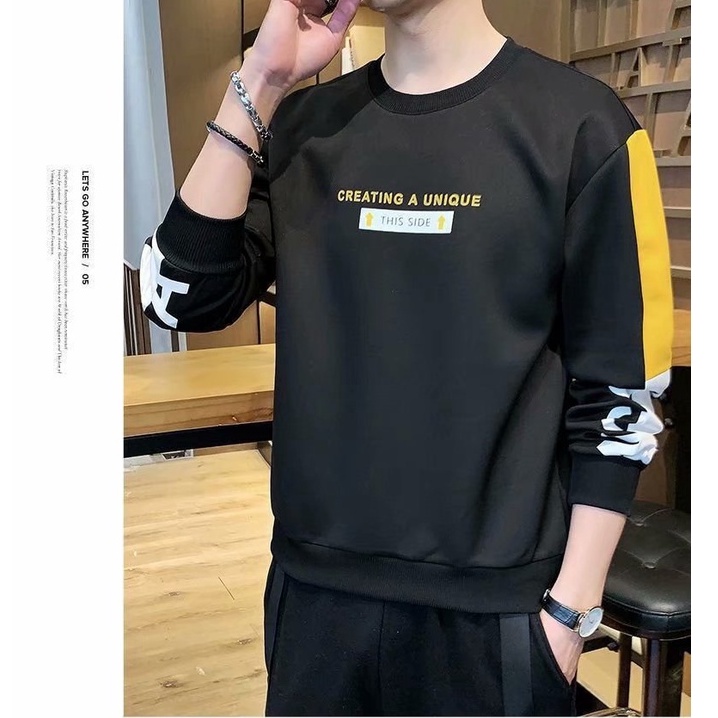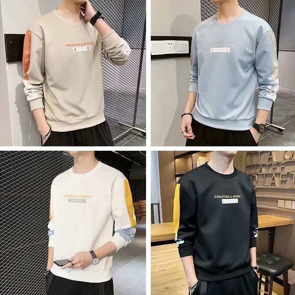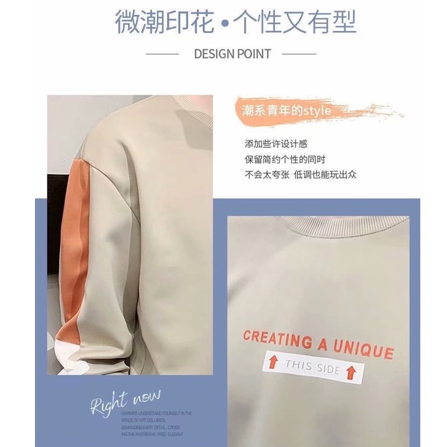 韓版新款男士薄款長袖t恤 拼接衛衣T恤潮牌刷毛潮流港風日系情侶裝上衣服 大學T T恤(LRY207)【壹號站】