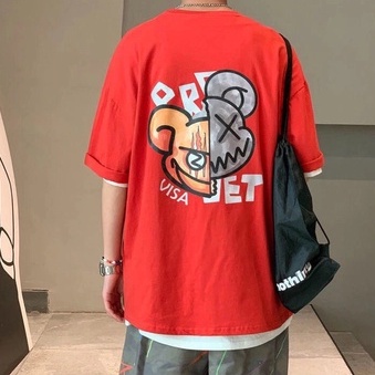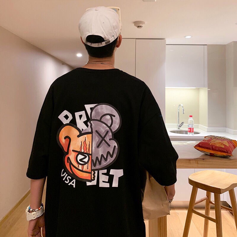 港風搞怪印花夏季衣服 素t 潮流 日系 短袖T恤 男生 寬鬆 嘻哈 大尺碼 情侶 五分袖 男t 短T(SKS575)