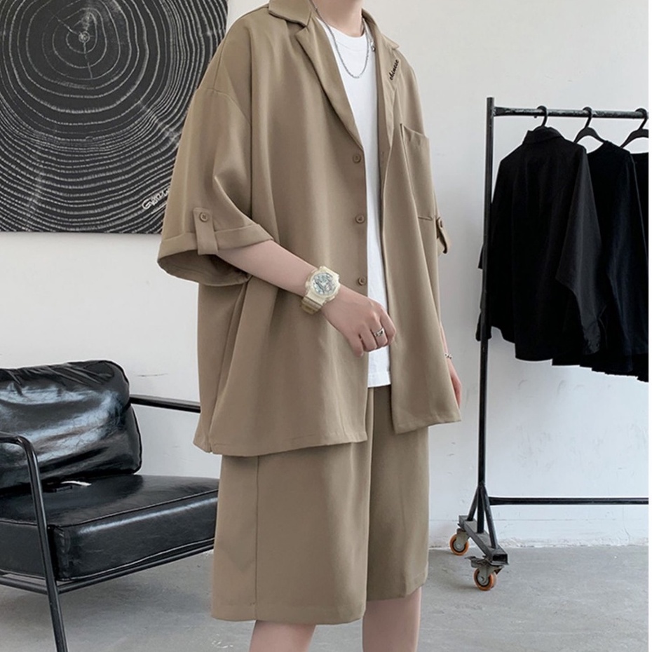 男生新款短袖西裝套裝 潮牌男士時尚休閒套裝 夏季套裝 西裝 套裝(EL8862)【壹號站】