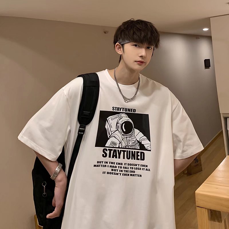 (M-8XL)港风潮牌宇航员印花短T 男圆领t 5分袖 印花T 短袖上衣 大學T 短T T恤(YT224)【壹號站】