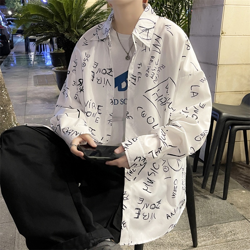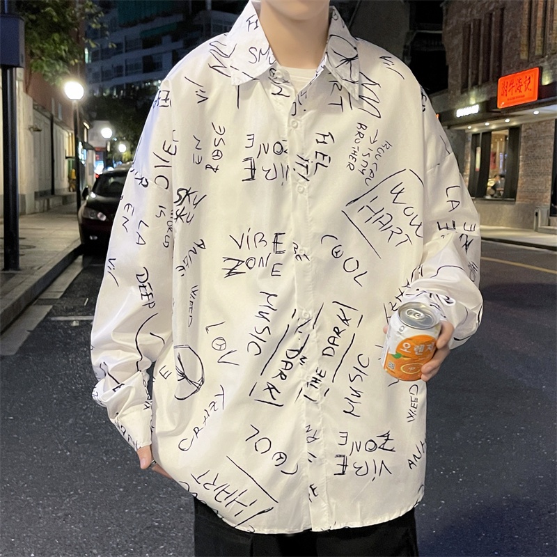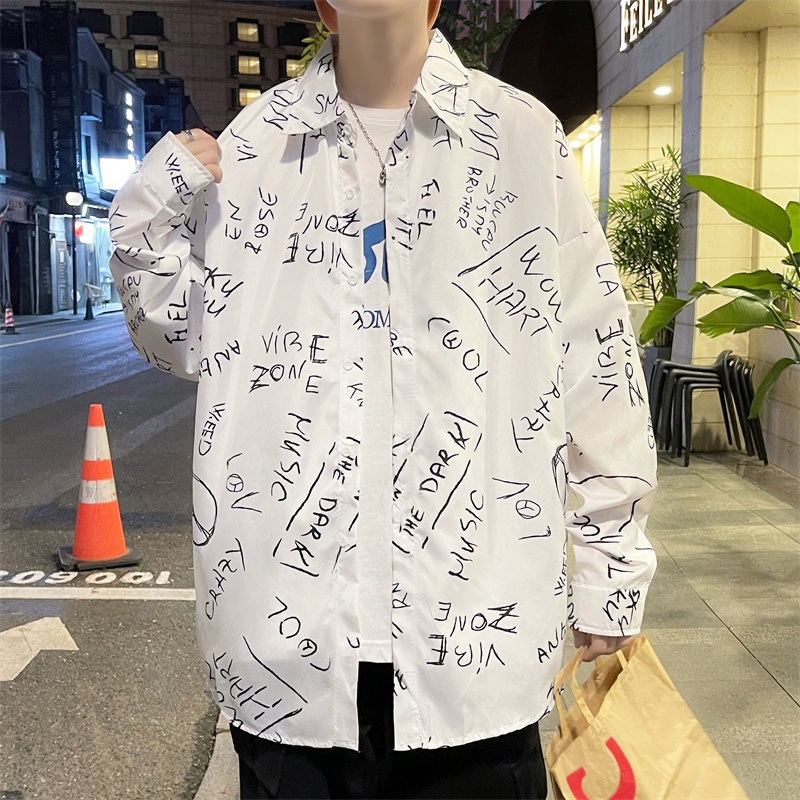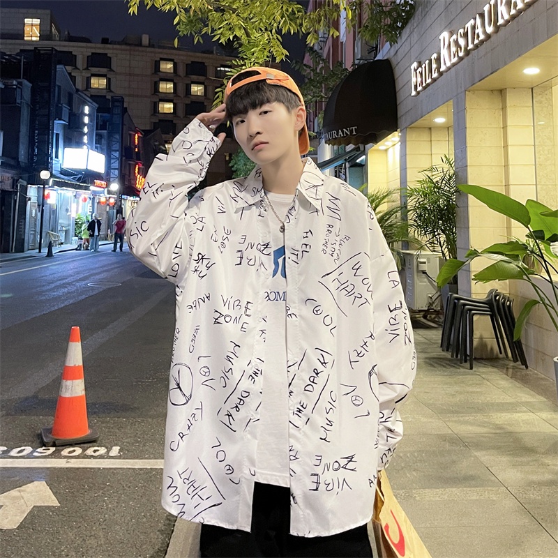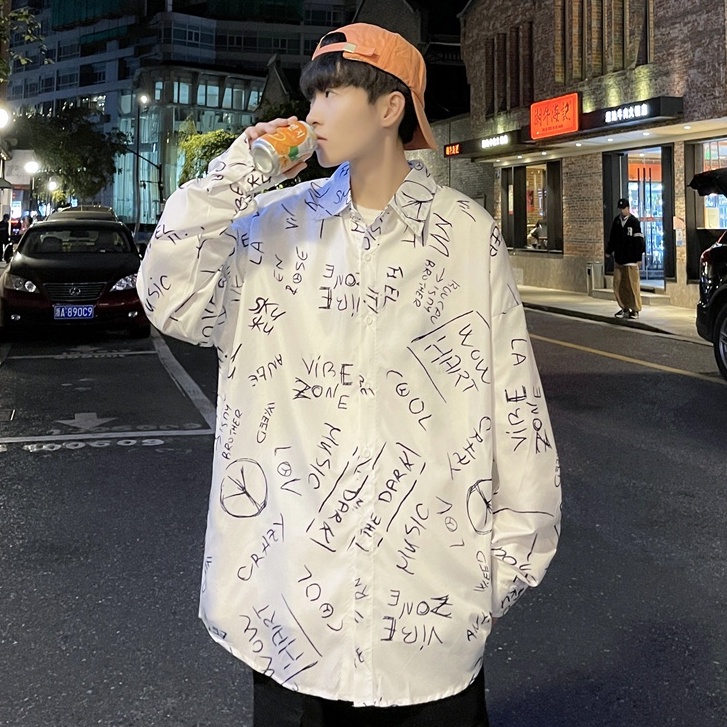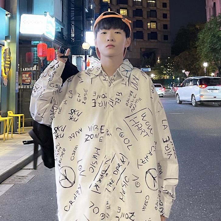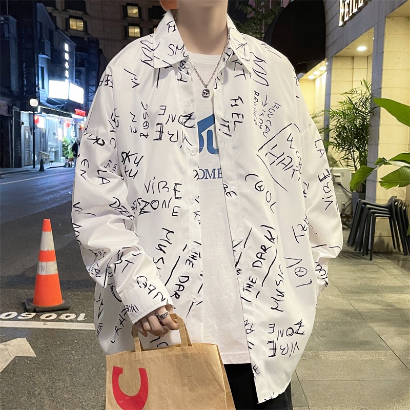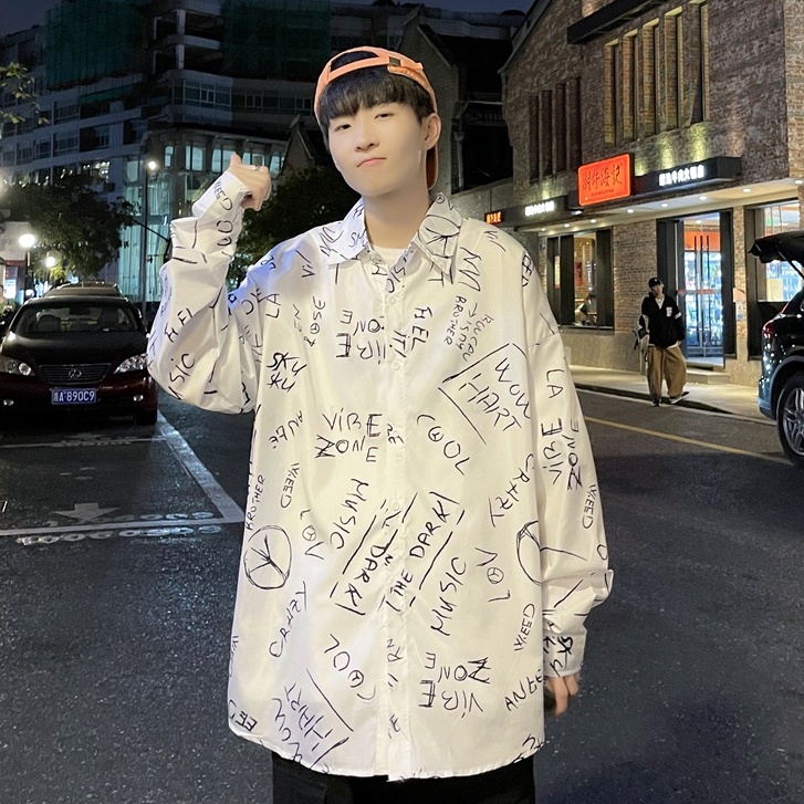 春秋新款 字母襯衫 寬鬆襯衫 復古襯衫 日系長袖襯衫 潮流襯衫 男士襯衫 潮流男裝 日系襯衫 休閒百搭 薄款(C133)