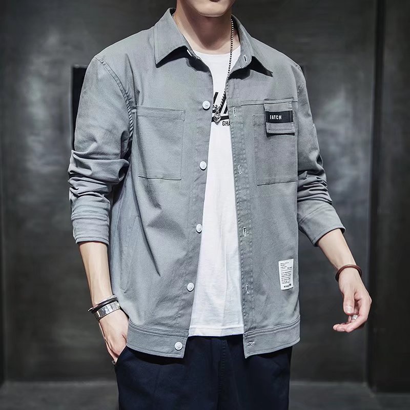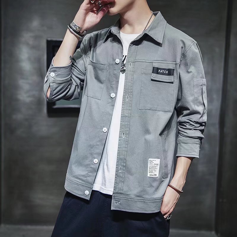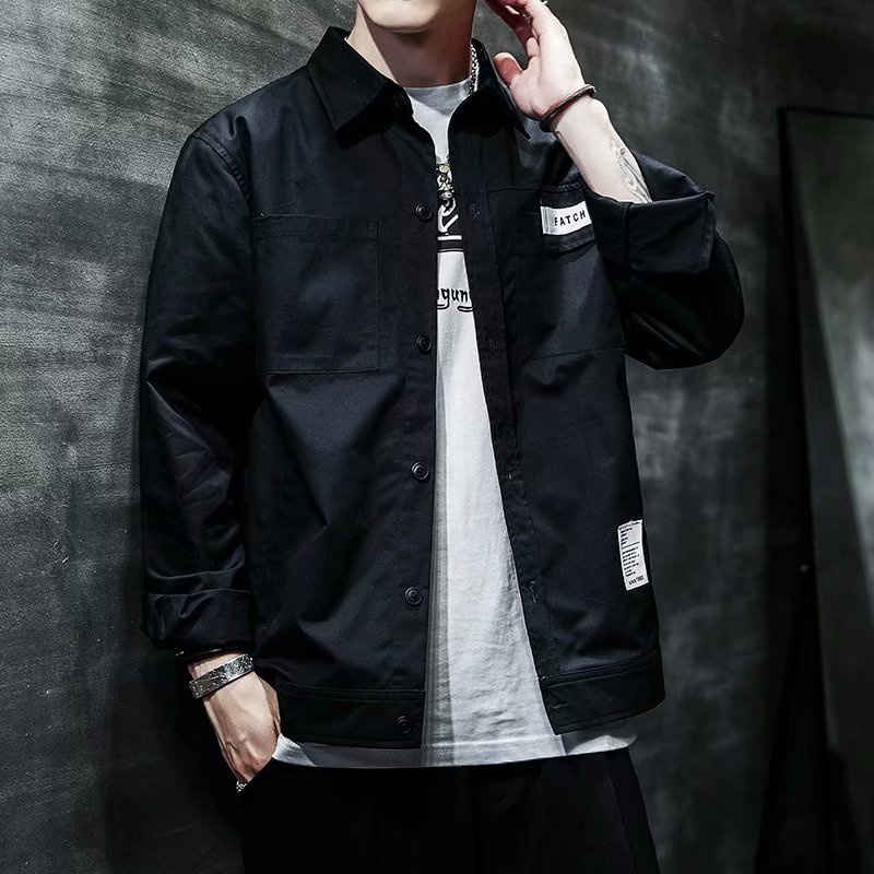 工裝長袖襯衫 春秋季港風襯衫長袖 男士休閒寬鬆襯衣外套痞帥情侶男女襯衫 百搭 襯衫 男生衣著(JH3032)【壹號站】