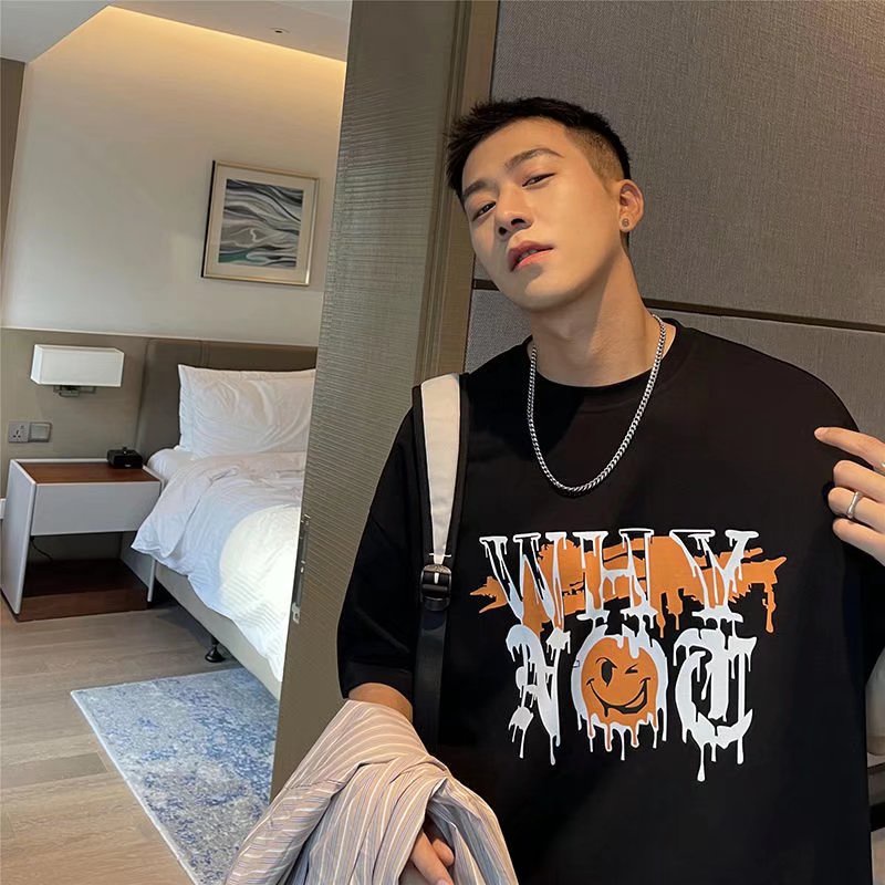 潮流男生短T 日系時尚百搭短T 寬鬆 嘻哈 大尺碼 五分袖 短T 印花T恤 情侶 衣著 上衣短袖 T恤(SKS2023)