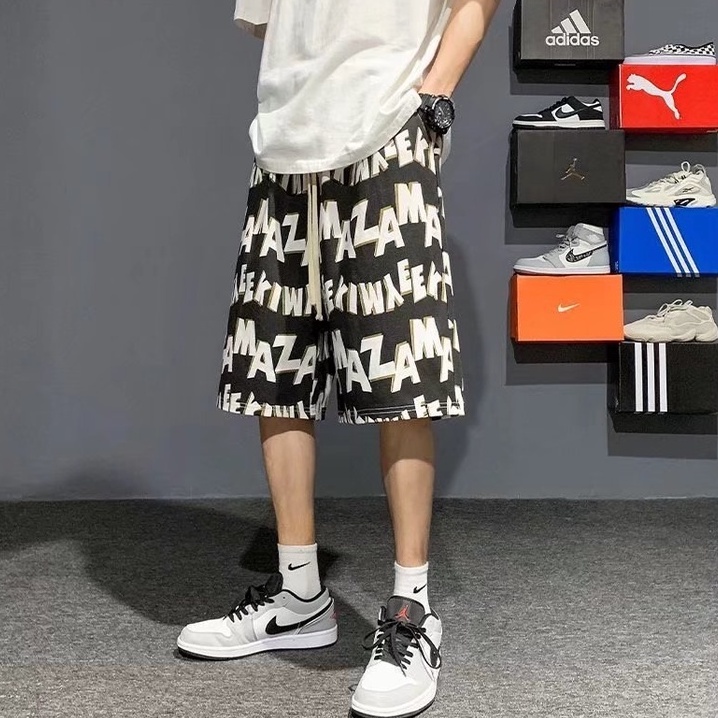 短褲男 薄款短褲 滿版字母印花短褲 運動短褲 男生短褲 運動休閒短褲 大尺碼 慢跑短褲 透氣褲 休閒短褲(YHE18)