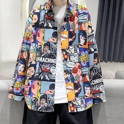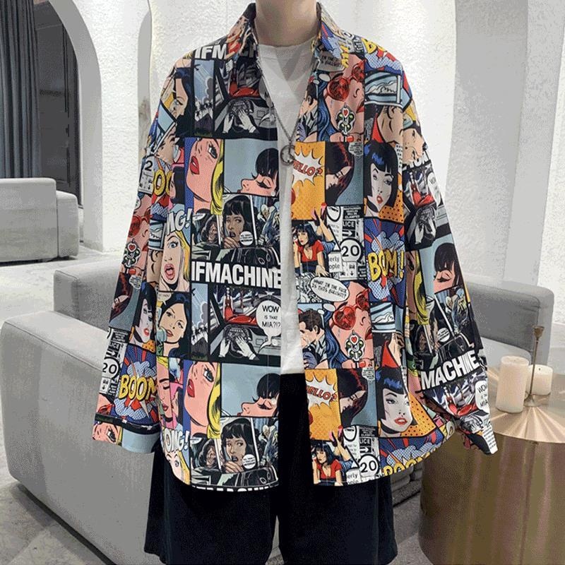 潮流滿版長袖襯衫 男韓版潮流高街帥氣原宿風黑暗系寬鬆風嘻哈襯衣 長袖 襯衫(YJC156)【壹號站】
