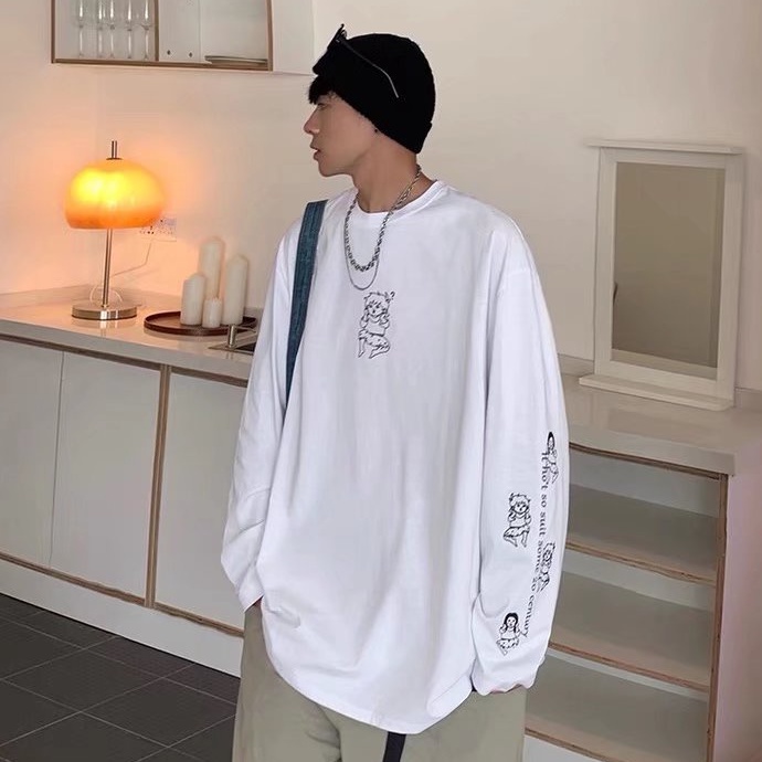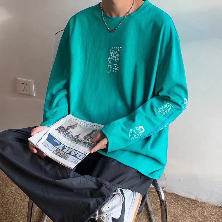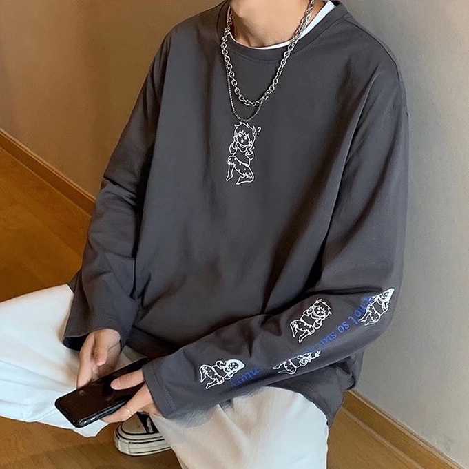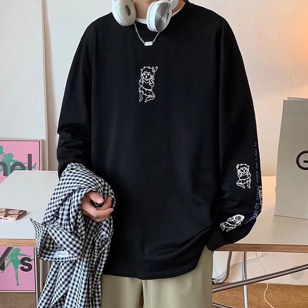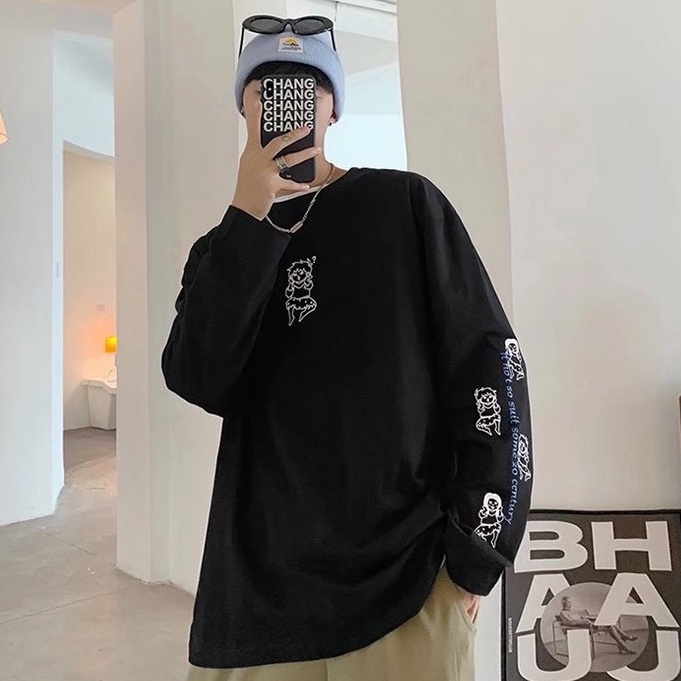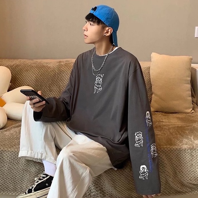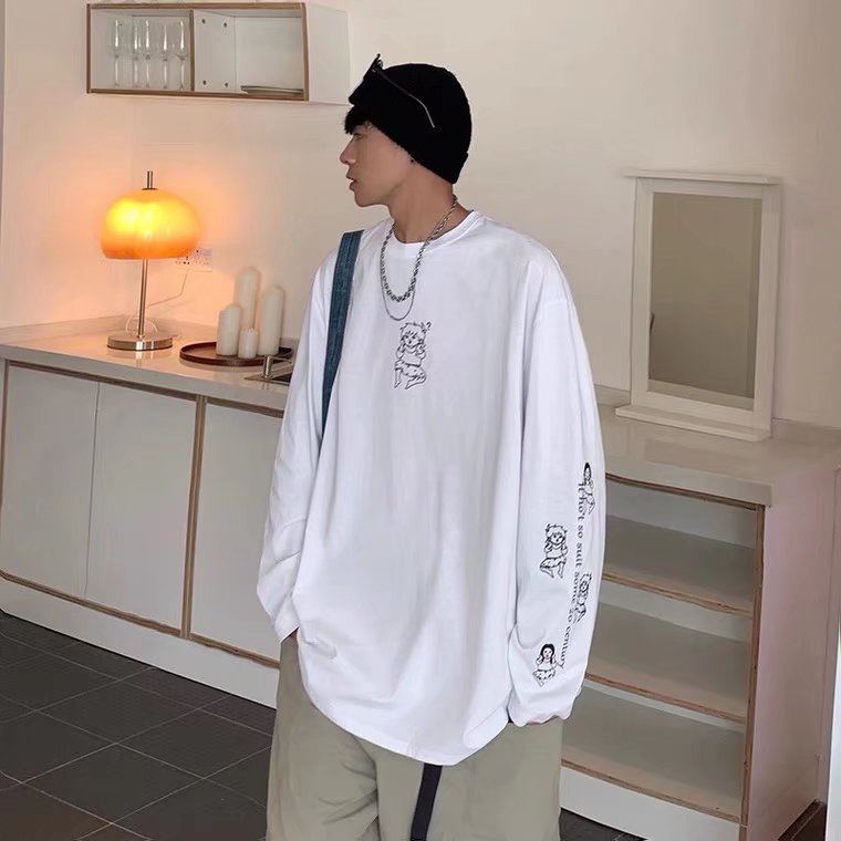 潮流薄款長T 情侶長袖T恤 大學T 印花寬鬆上衣 寬鬆長袖上衣 長袖 T恤 男裝 男女衣著(XH58)【壹號站】