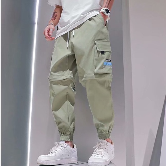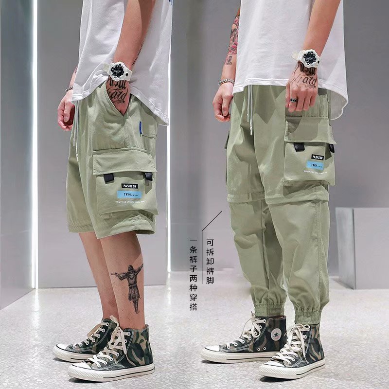 工作褲 可拆卸 休閒長褲 韓版長褲機能可拆卸工裝褲男束腳寬鬆潮牌反光五分褲子機能短褲 休閒長褲(SDP728)【壹號站】