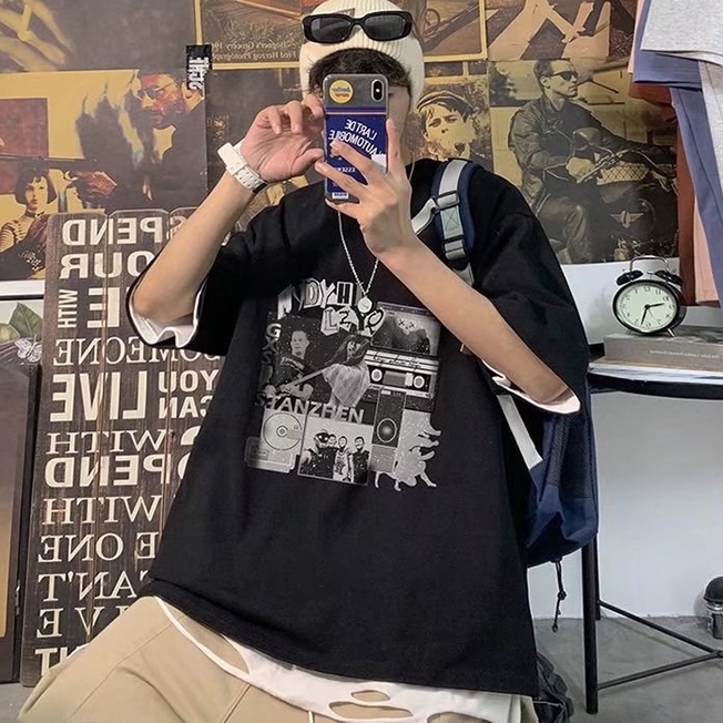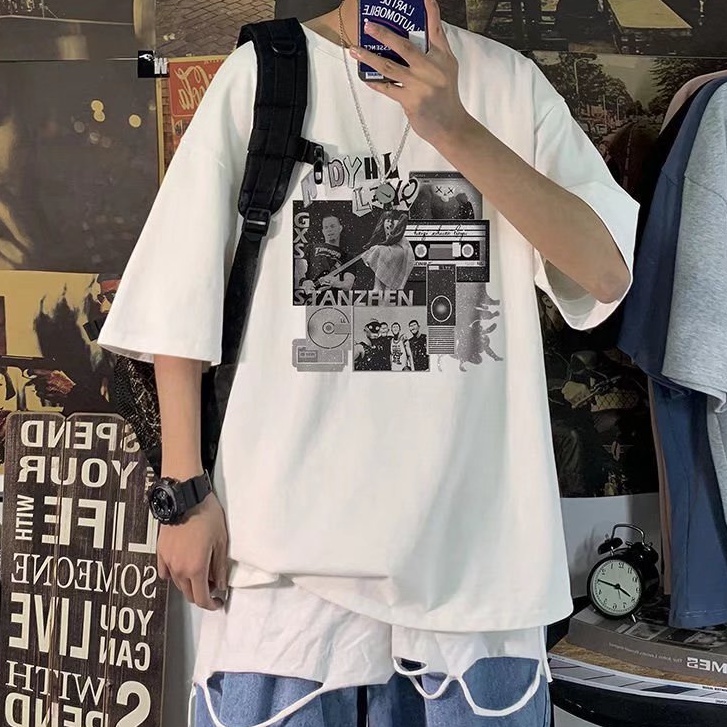 潮流男生短T 日系時尚百搭短T 寬鬆 嘻哈 大尺碼 五分袖 短T 印花T恤 情侶 衣著 上衣短袖 T恤(SKS2019)