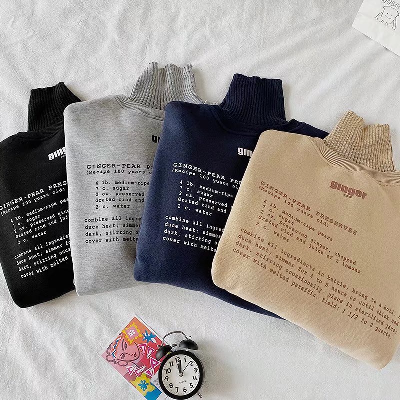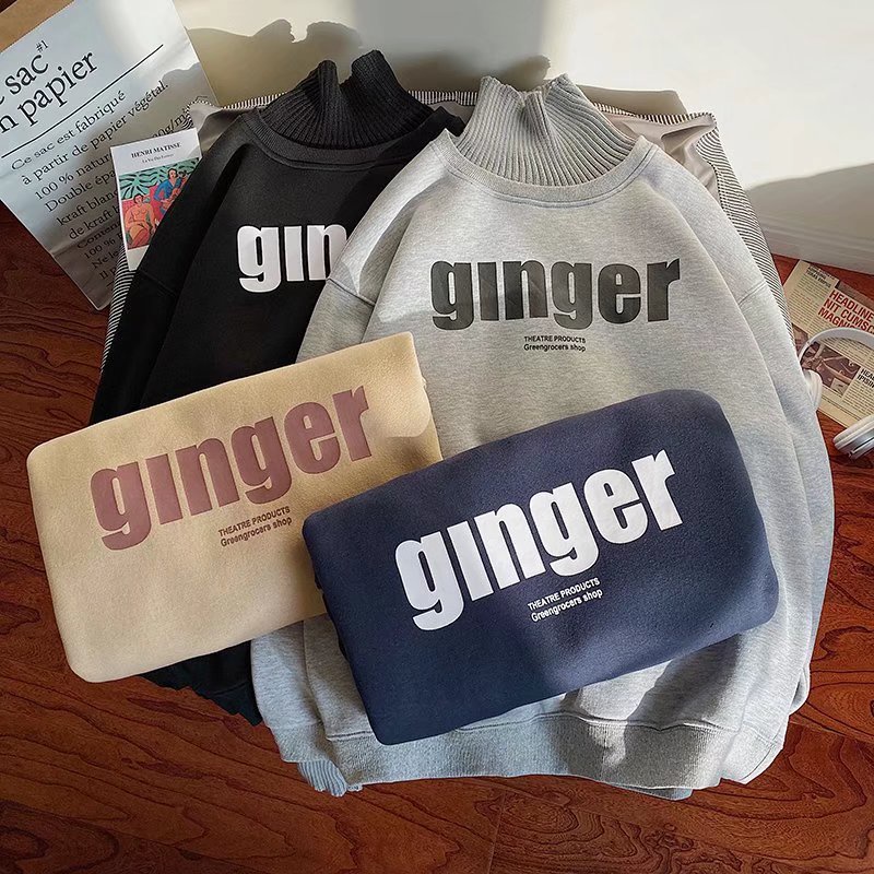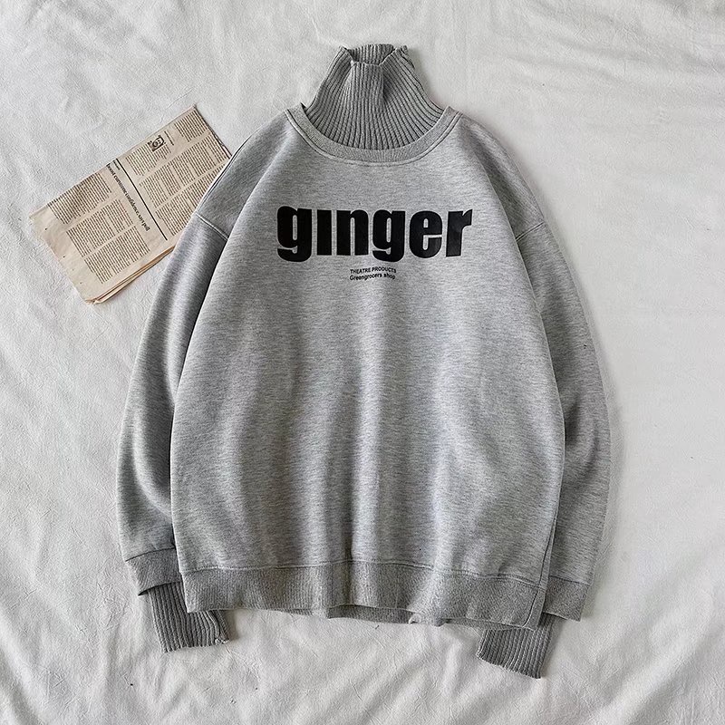 刷毛毛衣領印花圓領套頭大學T 情侶裝流行刷毛款男潮版港風寬鬆版 大學T 印花T 長T(QYW023)【壹號站】