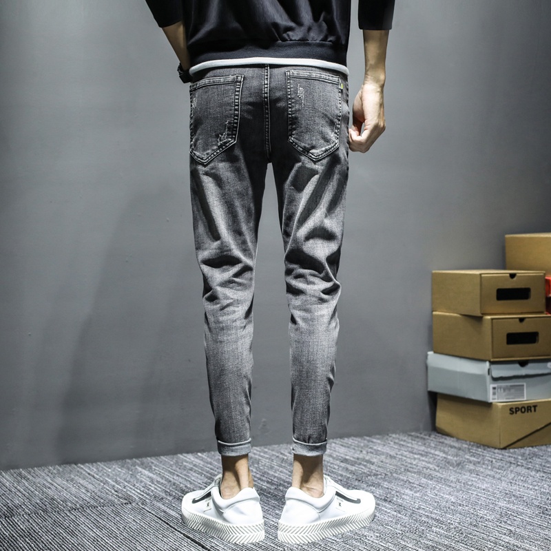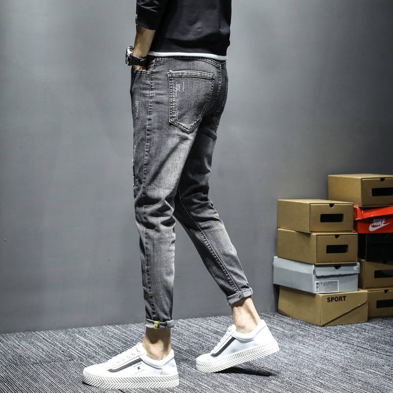 牛仔修身破褲 破洞褲 潮褲 破膝 牛仔長褲 破褲 韓版時尚百搭 男生 丹寧 休閒長褲 破洞牛仔褲(TOPK23)