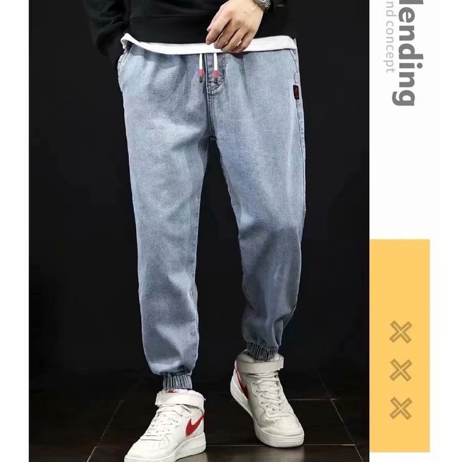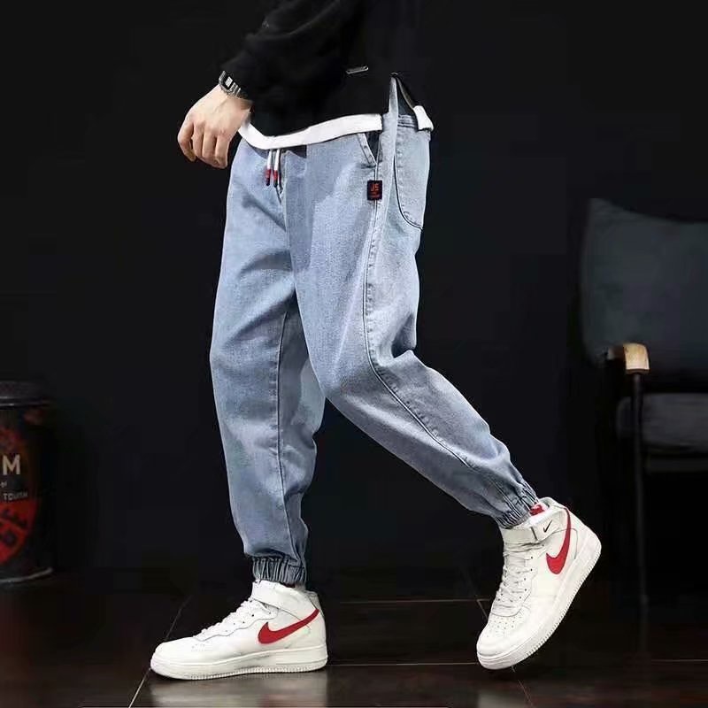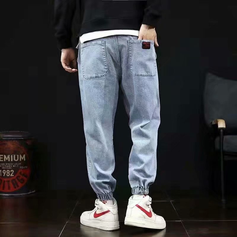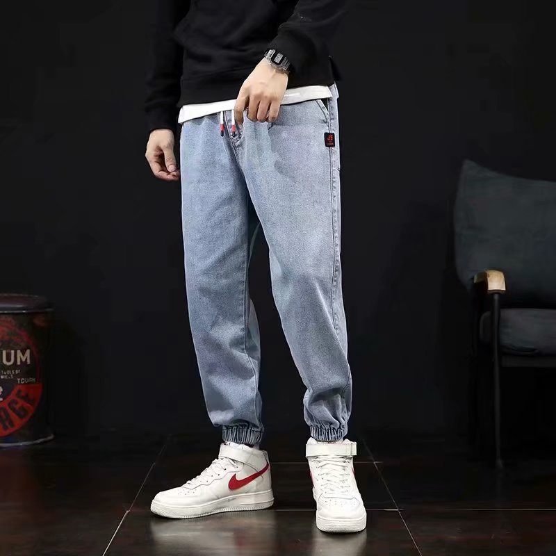 牛仔褲男 潮牌 機車風 韓版 哈倫 百搭 原宿風ins束腳 休閒褲子 潮褲 牛仔褲 長褲(GY9017)【壹號站】