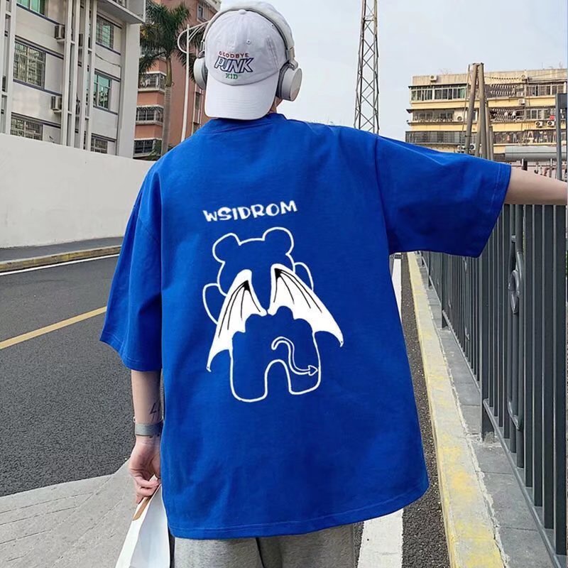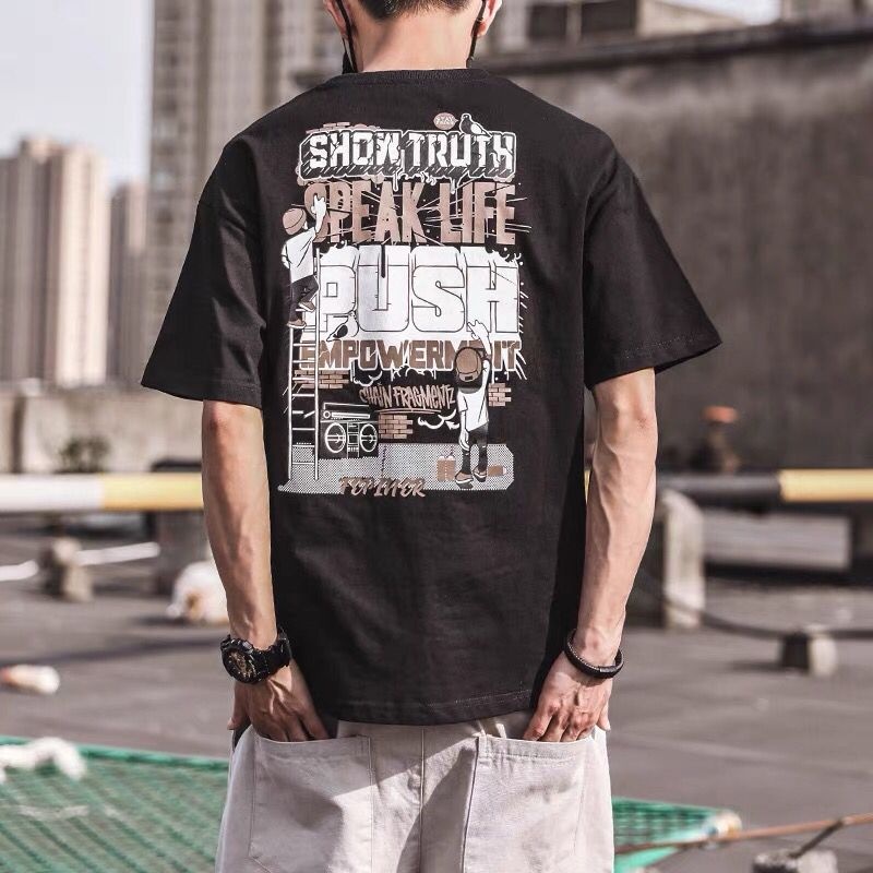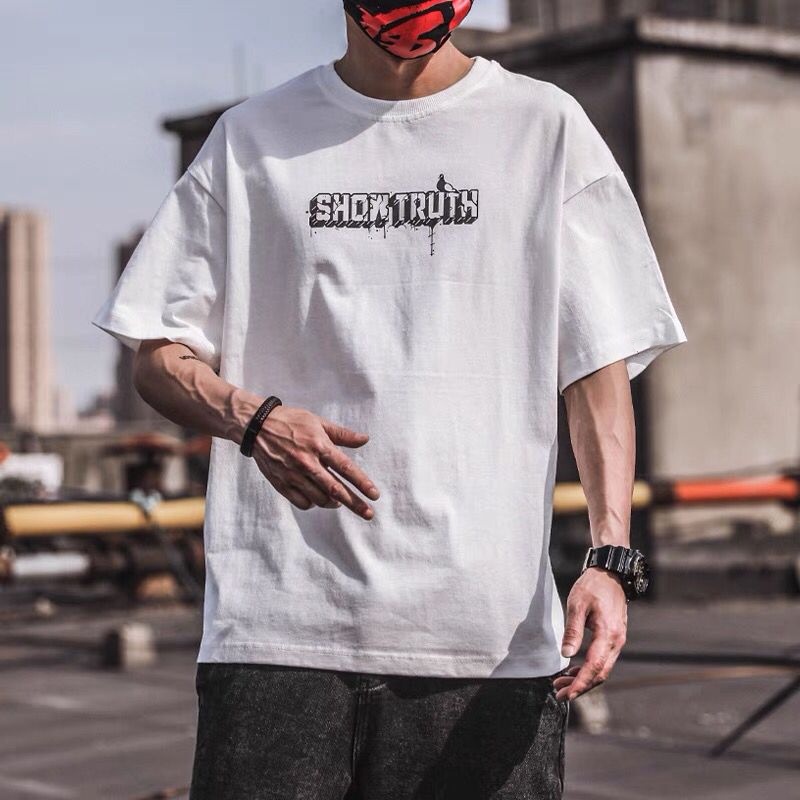 (2款可選)夏季衣服 印花t 潮流 日系 短袖T恤 男生 寬鬆 嘻哈 大尺碼 情侶 五分袖 短T(HL777)【壹號站】
