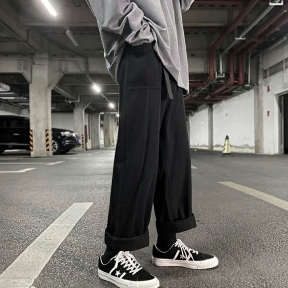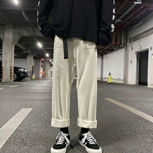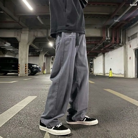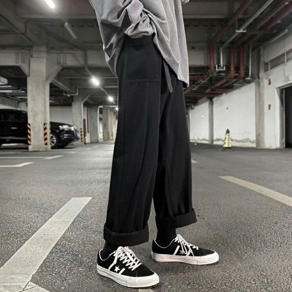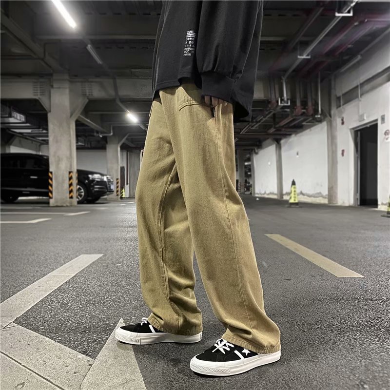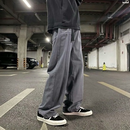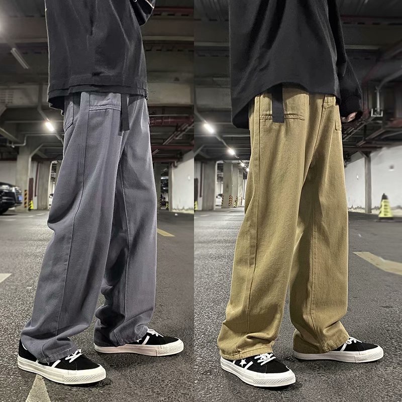日韓街頭 韓流 素色長寬褲 工裝褲 男 休閒百搭褲 工作褲 軍事風 中筒長褲 潮褲 休閒褲(TCT125)【壹號站】