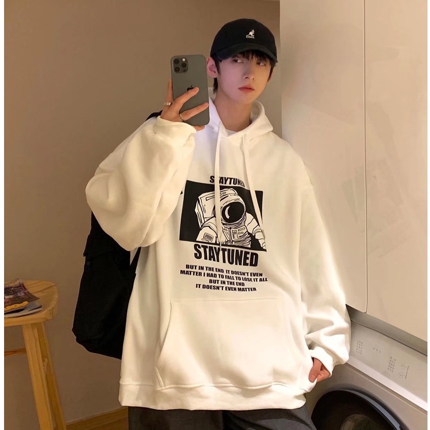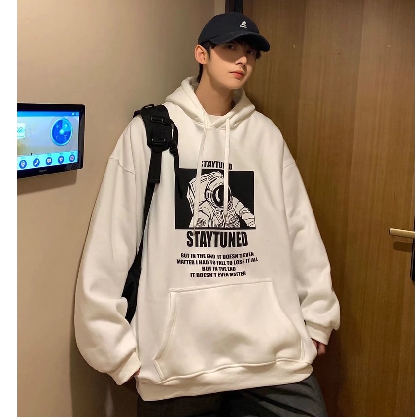 港風新款潮牌連帽刷毛款男潮流寬鬆韓版新款男生帥氣上衣嘻哈帶帽衫 長T 印花T 刷毛T 大學T(SKS982)【壹號站】