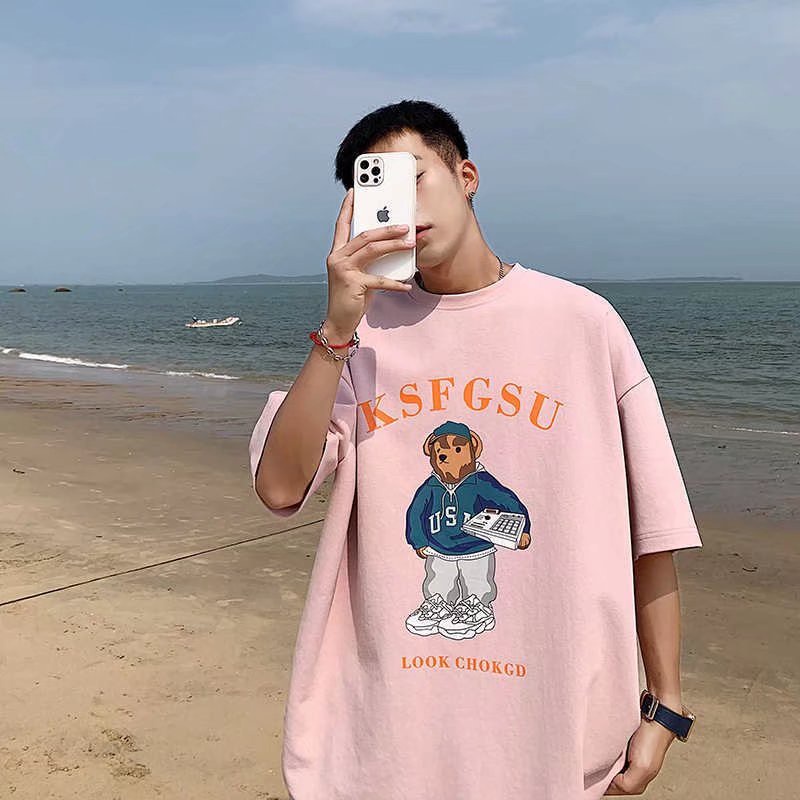 潮流男生短T 日系時尚百搭短T 寬鬆 嘻哈 大尺碼 五分袖 短T 印花T恤 情侶 衣著 上衣短袖 T恤(SKS2027)