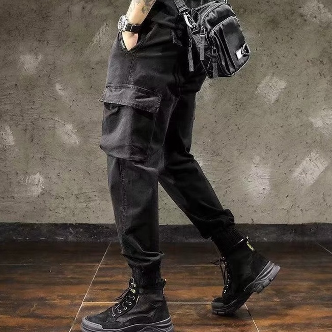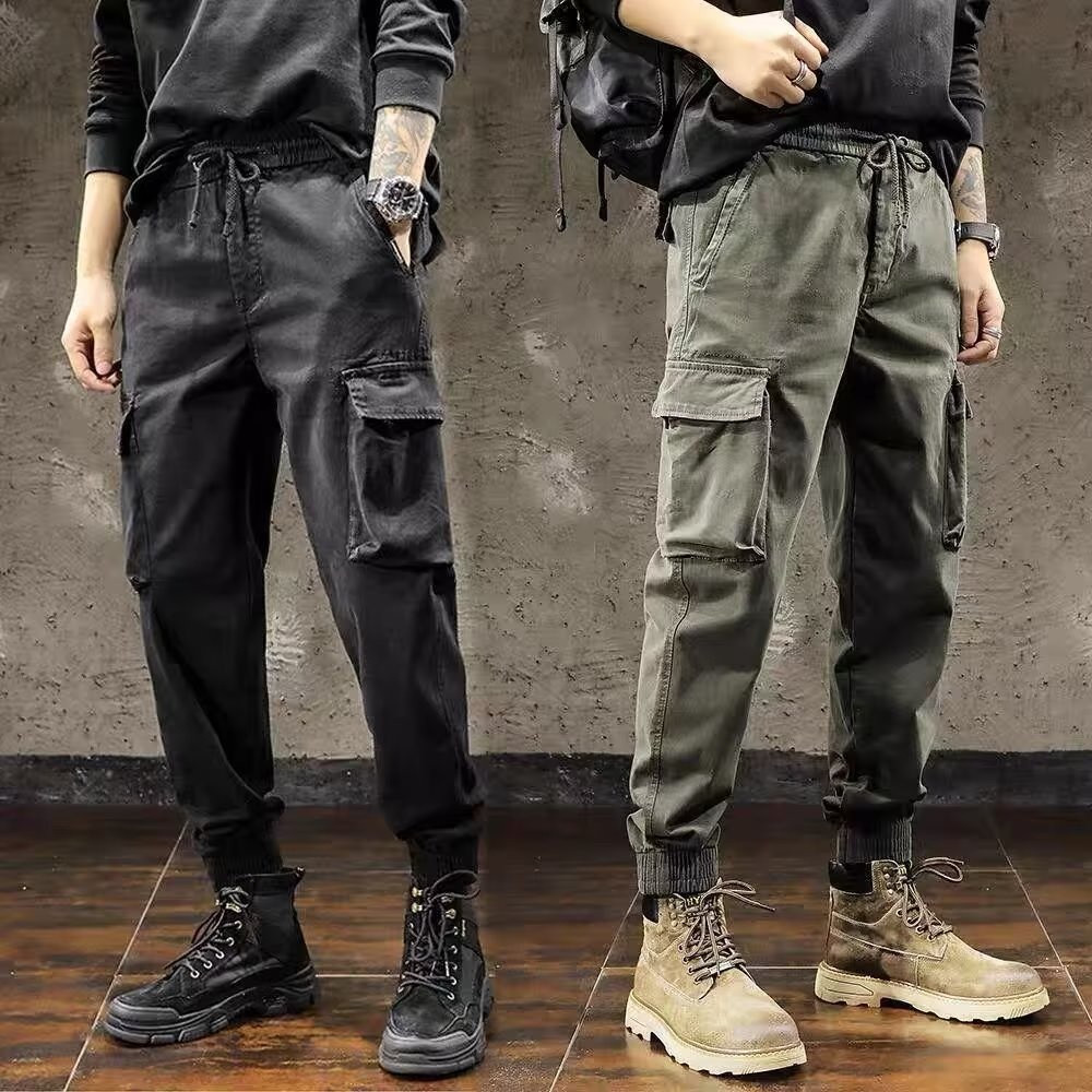 純棉工裝褲 側口袋工作褲 新潮長褲 直筒寬鬆休閒長褲 工裝長褲縮口褲 軍褲 休閒褲 多袋褲(LXK05)【壹號站】