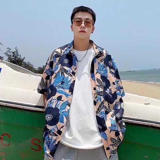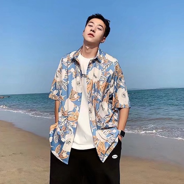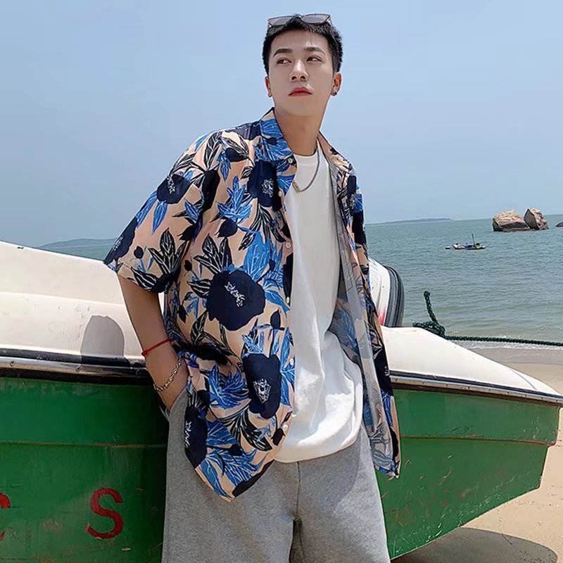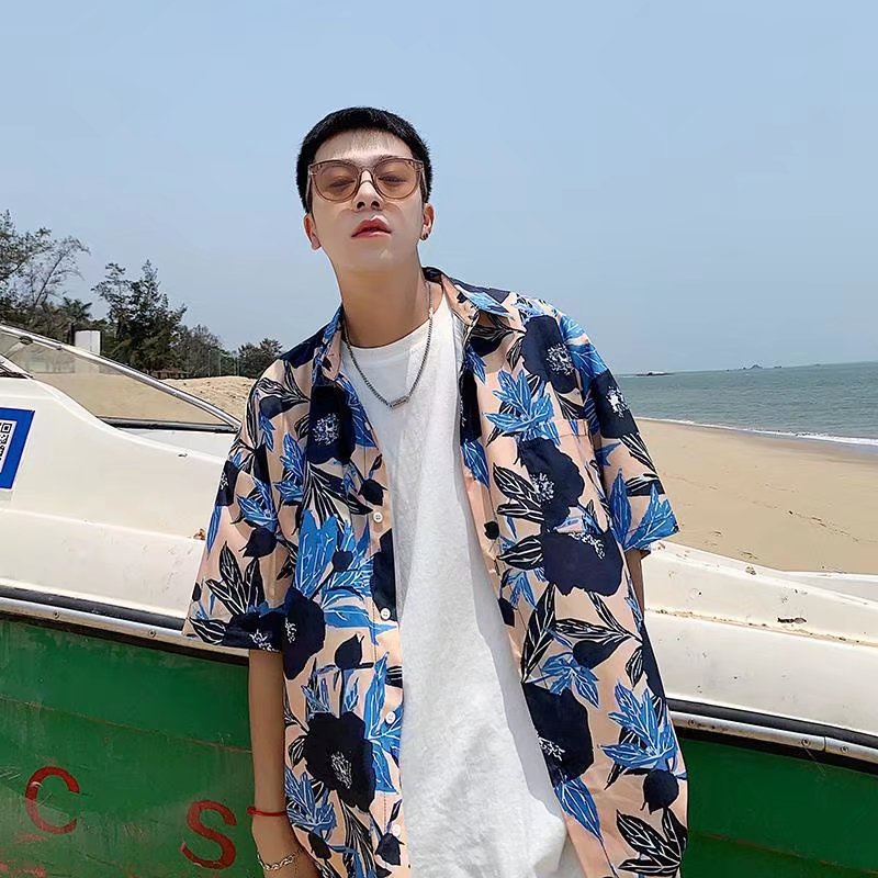 夏威夷度假風短袖 滿版花襯衫不規則 襯衫男 短袖 寬鬆襯衫 百搭 日式 男生衣著 情侶襯衫(RSJ178)【壹號站】