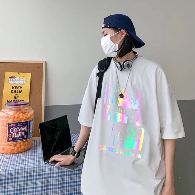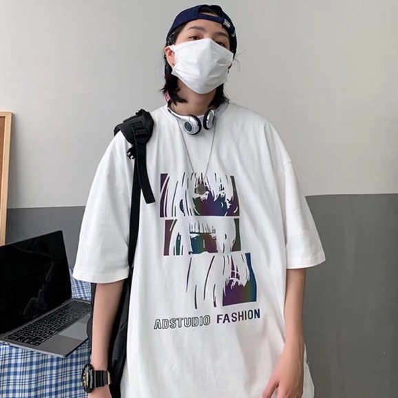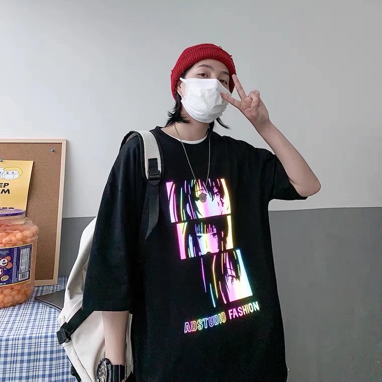 反光 短袖 T恤男 寬鬆印花港風ins情侶裝潮牌夜光搞怪臉半袖上衣 短袖 惡魔反光 T恤 短T(XB184)【壹號站】