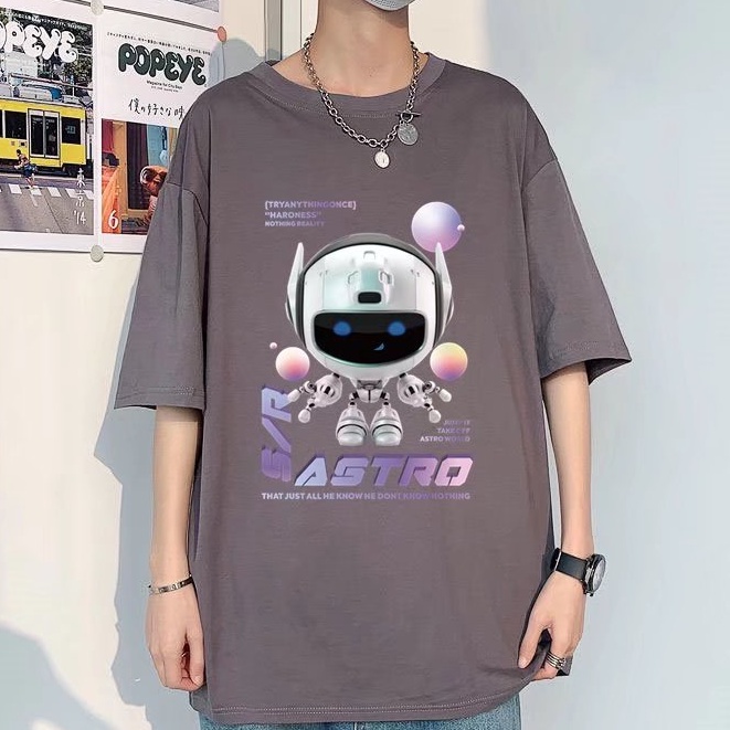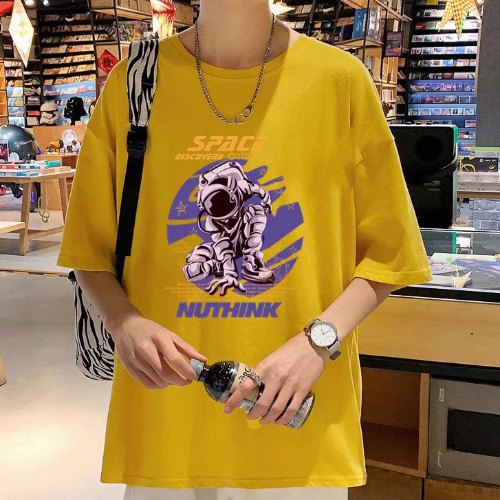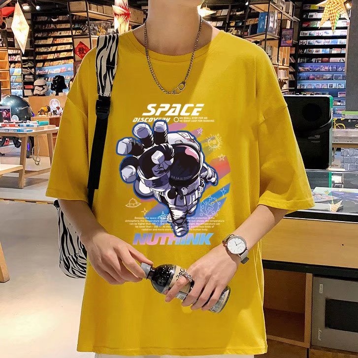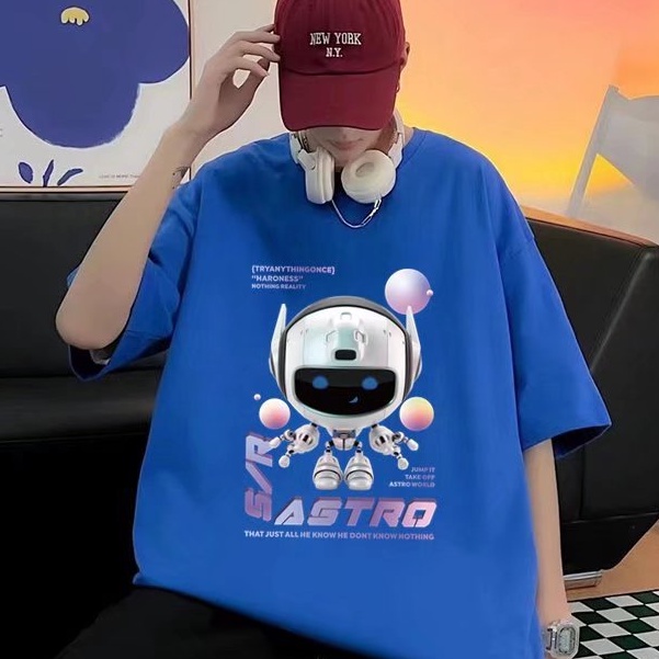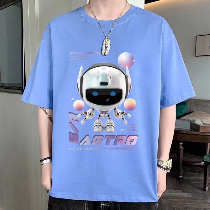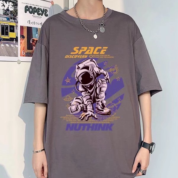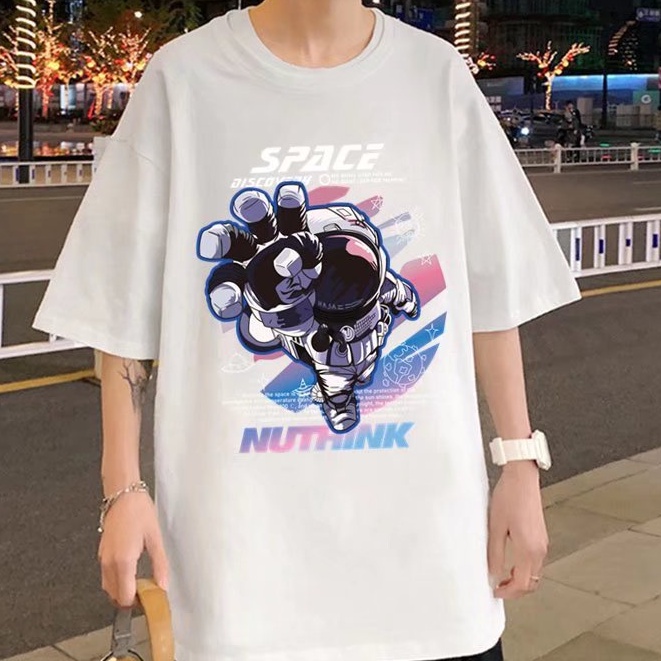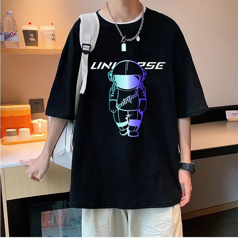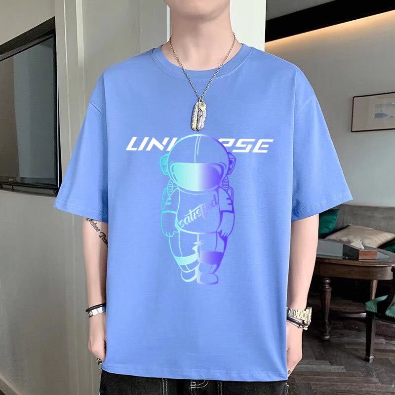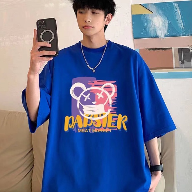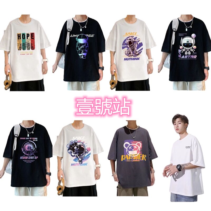 (M-5XL)夏季潮流新款美式卡通印花男T恤衫 潮牌圓領寬鬆百搭短T 男T恤 印花T恤 大尺碼 短男T(JP888)
