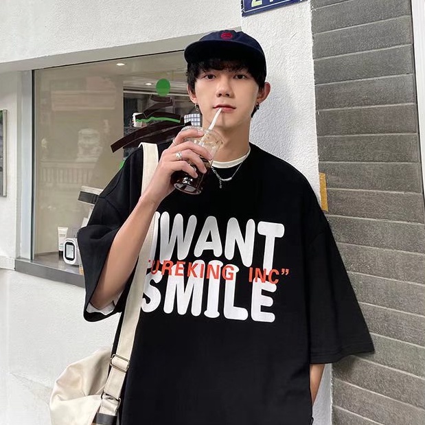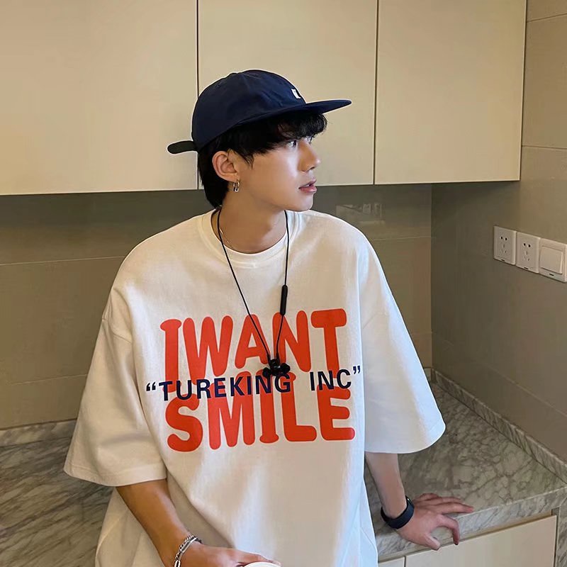 潮流男生短T 日系時尚百搭短T 寬鬆 嘻哈 大尺碼 五分袖 短T 印花T恤 情侶 衣著 上衣短袖 T恤(SKS2005)