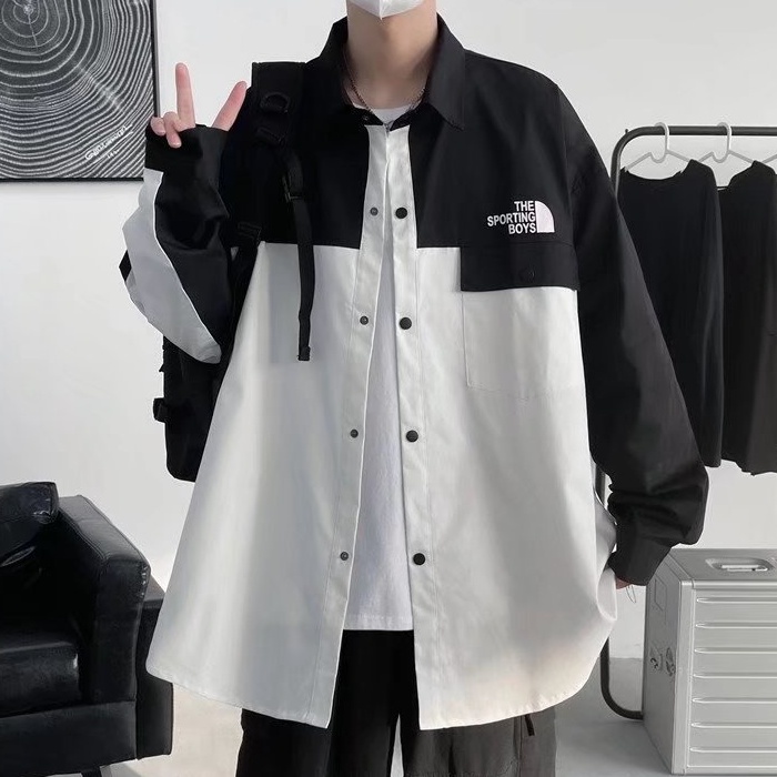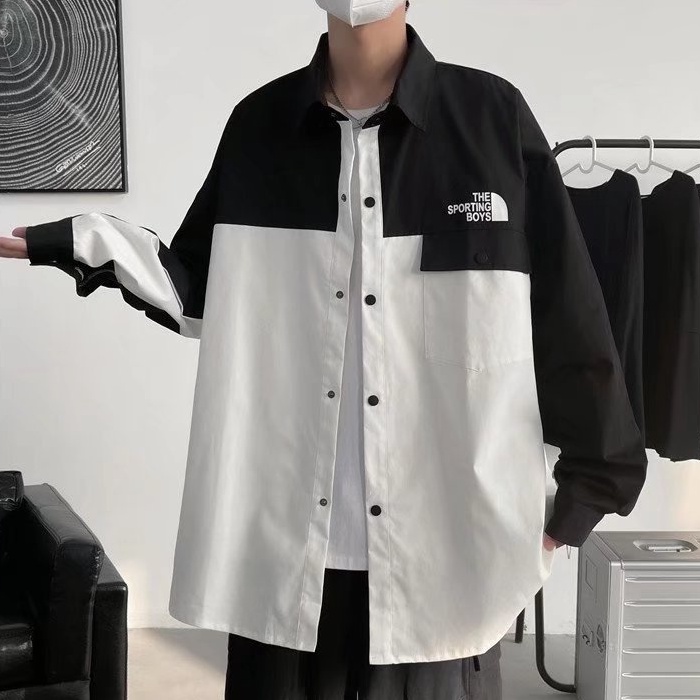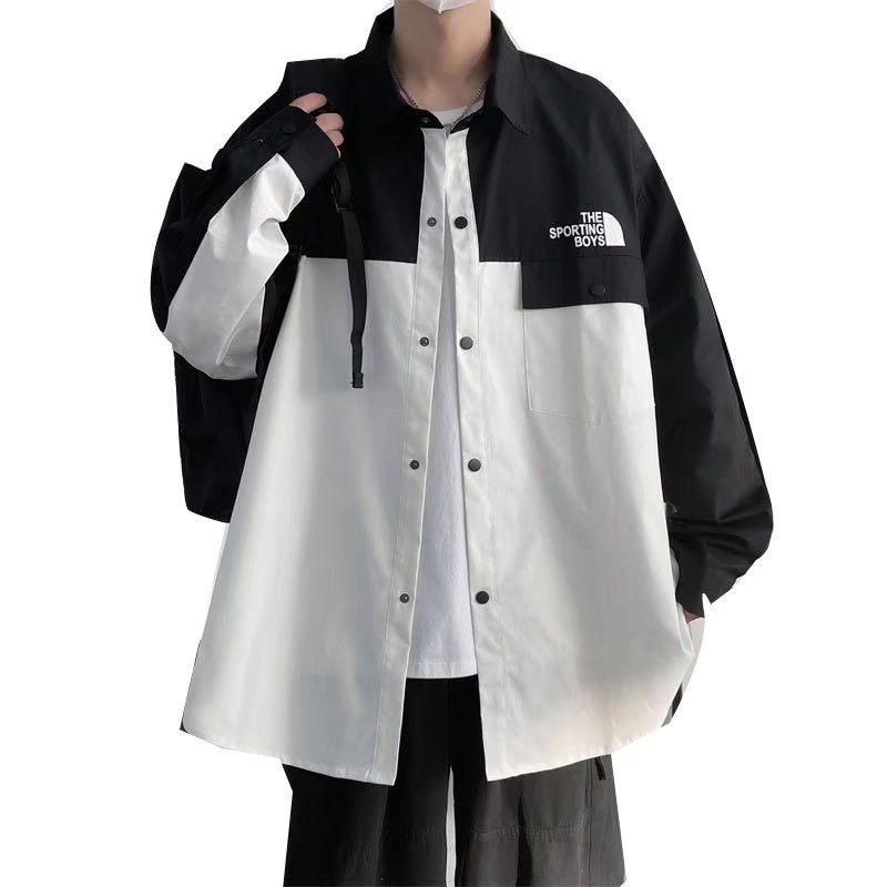 襯衫男 拼接長袖襯衫 韓版 潮流 寬鬆 上衣服春夏季痞帥氣潮牌設計感 男生襯衣 襯衫男(GH312)【壹號站】