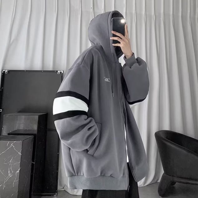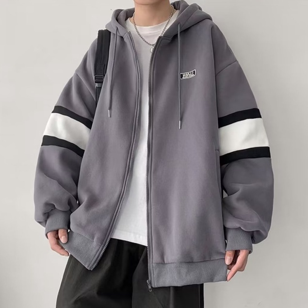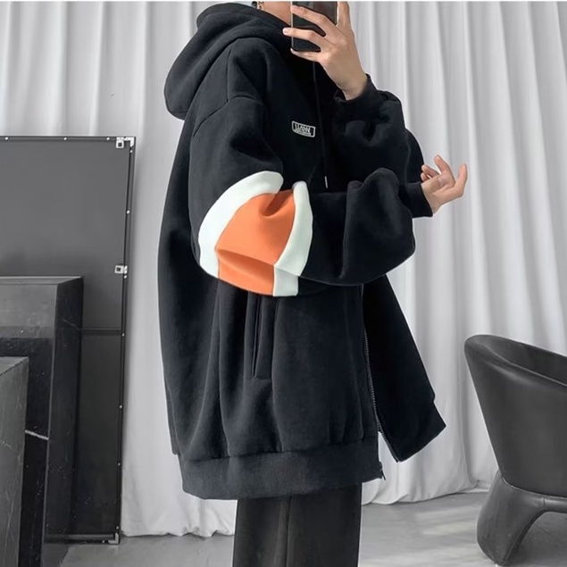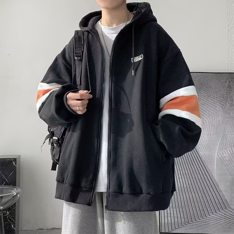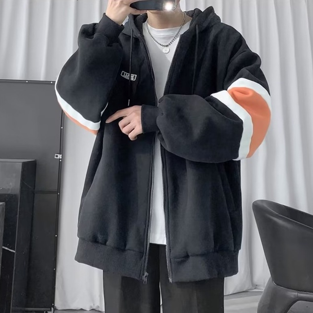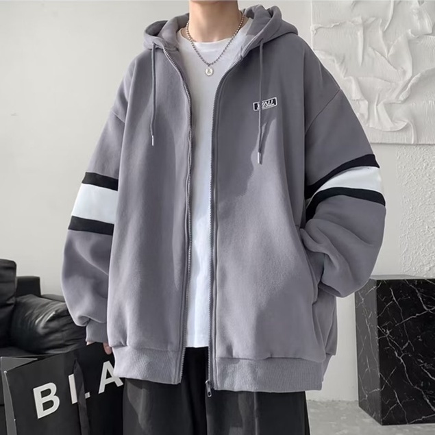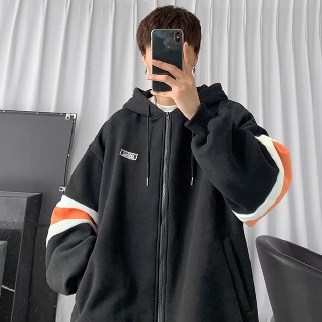 連帽刷毛拼接外套男 帽衫外套男 韓版寬鬆上衣服 休閒百搭開衫外套 原宿風潮流情侶外套 連帽外套(YHR2)【壹號站】