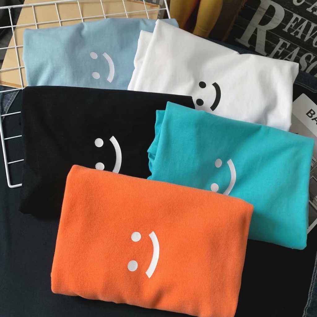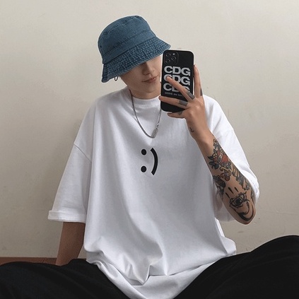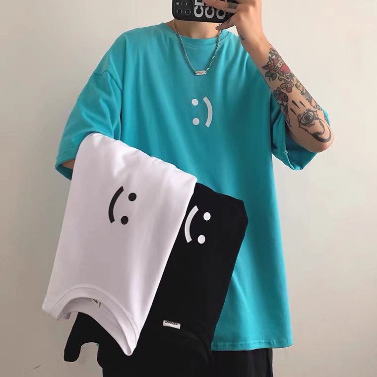 潮流笑臉男生短T 日系時尚百搭短T 寬鬆 嘻哈 大尺碼 五分袖 短T 印花T恤 情侶 上衣短袖 T恤(XB215)