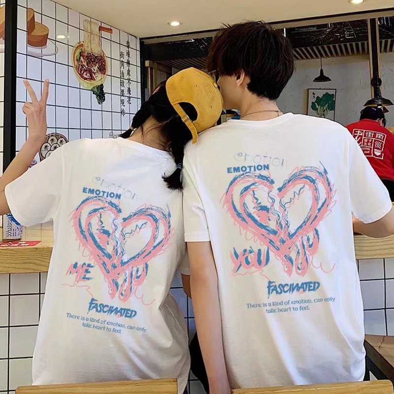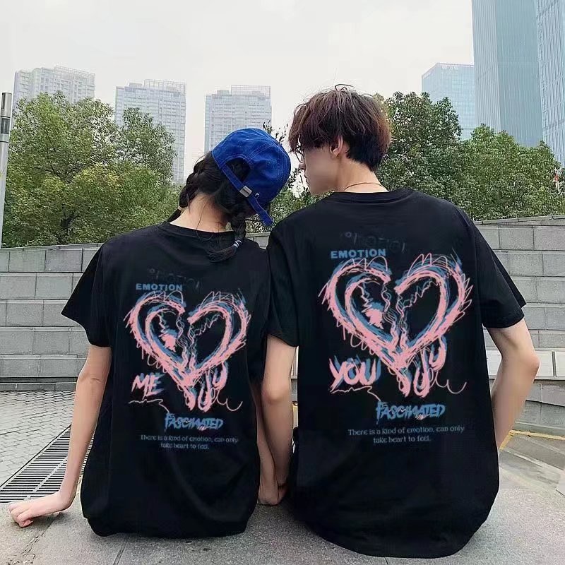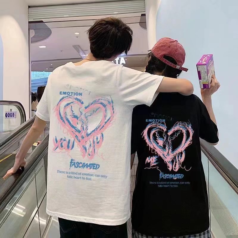 潮牌夏季新款短袖情侶裝休閒T恤 愛心印花潮流短T 百搭印花短T 韓版潮男T 情侶上衣 男女衣著(SDD99)