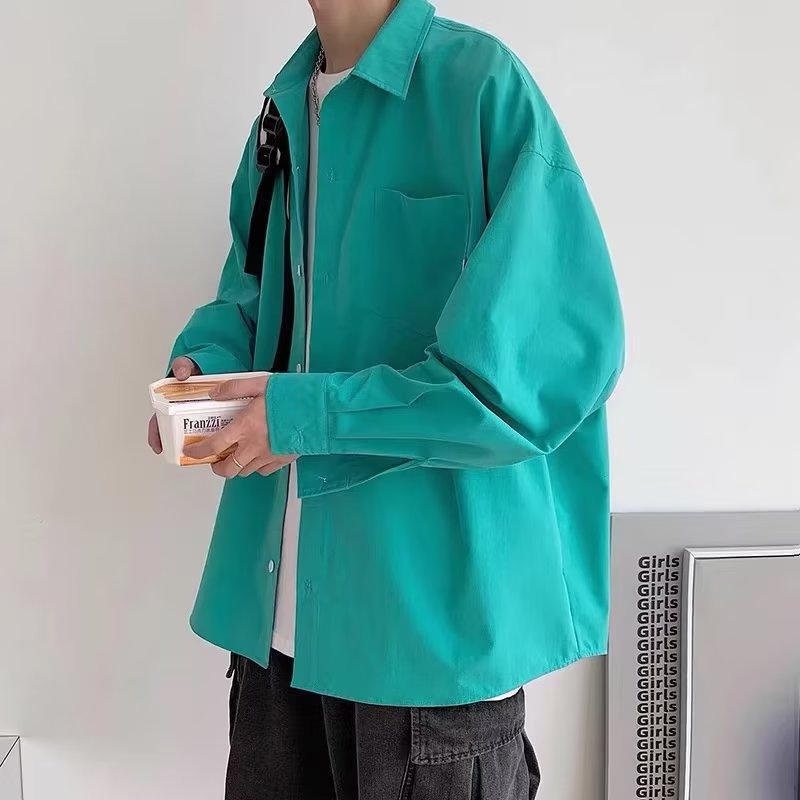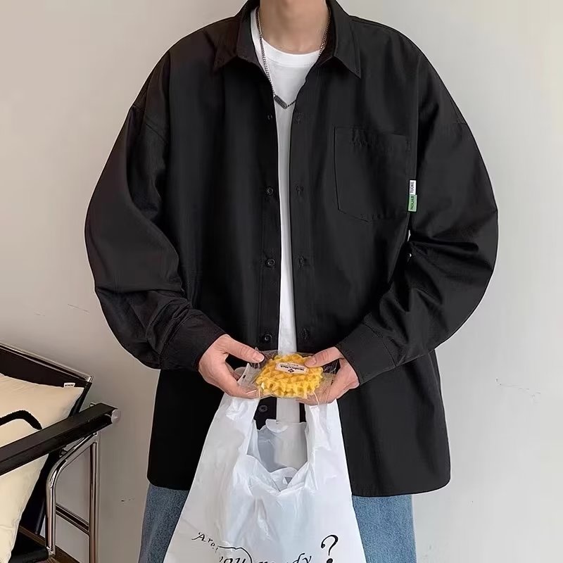 新款簡約純色小標翻領長袖襯衫 日系風 韓版寬鬆外搭襯衫 情侶襯衫 大尺碼學院風工作襯衫長袖襯衫(KC308)【壹號站】