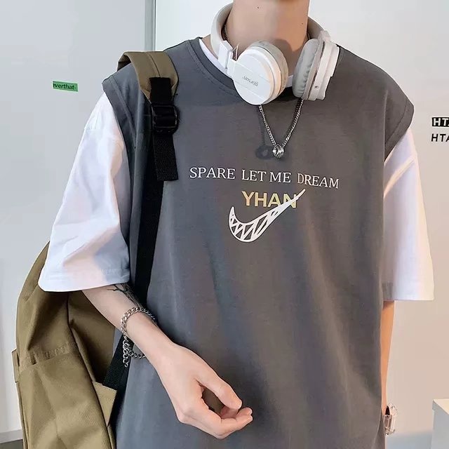 (主打多款潮流背心T)潮牌無袖坎肩情侶背心 夏季健身打底汗衫 美式印花百搭無袖男T 帥氣運動背心 背心男(XL333)