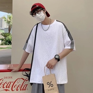 韓版夏季印花T恤 素t 潮流 日系 短袖T恤 男生 情侶 五分袖 大學T 短T(LR993)【壹號站】