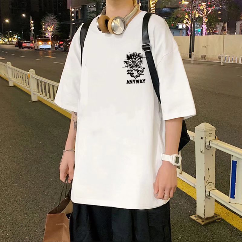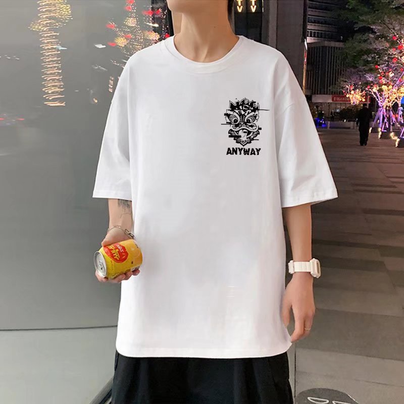 港風印花夏季衣服 素t 潮流 日系 短袖T恤 男生 寬鬆 嘻哈 大尺碼 情侶 五分袖 男t 短T(JPD98)